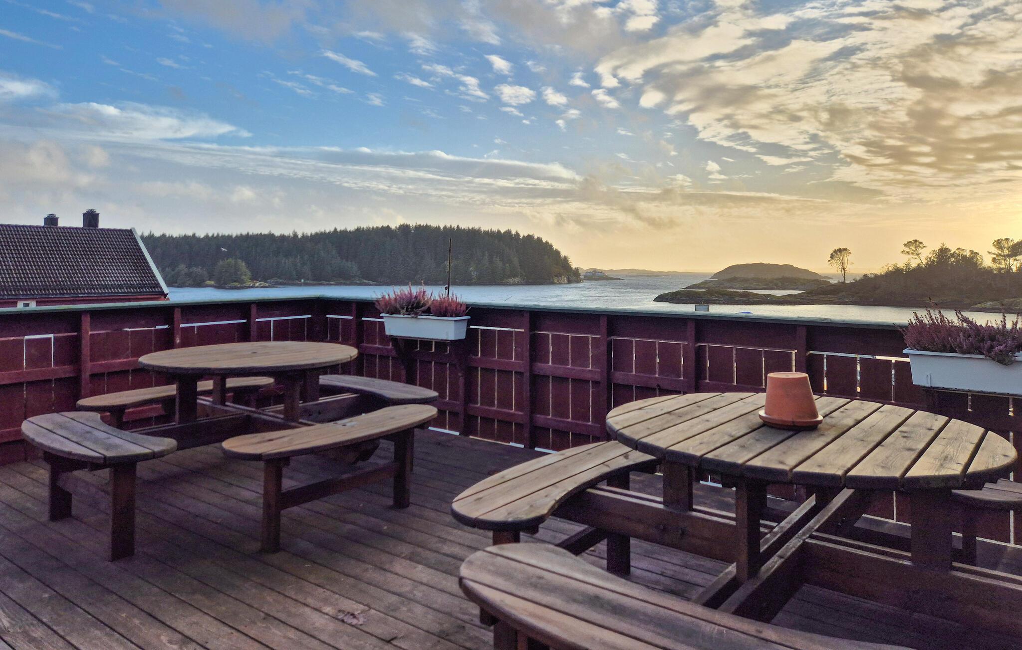 Entdecken Sie auf zahlreichen Wanderwegen die unberührte Natur der Umgebung und genießen Sie dabei immer wieder herrliche Ausblicke auf das Wasser. Direkt am Haus bieten sich hervorragende Möglichkeiten zum Angeln. Unternehmen Sie außerdem abwechslungsreiche Tagesausflüge nach Fedje, dem charmanten „Dorf im Meer“, zum Alpakka Park Bauernhof oder in die Stadt Bergen mit ihrem berühmten Bryggen-Viertel, dem Aquarium und der Seilbahn auf den Fløyen.