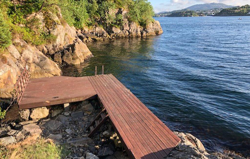 Der idyllische Außenbereich mit direktem Zugang zum Wasser bietet ideale Voraussetzungen für Outdoor-Aktivitäten. Springen Sie vom Holzsteg ins erfrischende Wasser oder genießen Sie bei einer Tasse Kaffee den atemberaubenden Blick auf die Fjorde. Genießen Sie die Ruhe der Natur beim Angeln und schalten Sie vom Alltag ab.