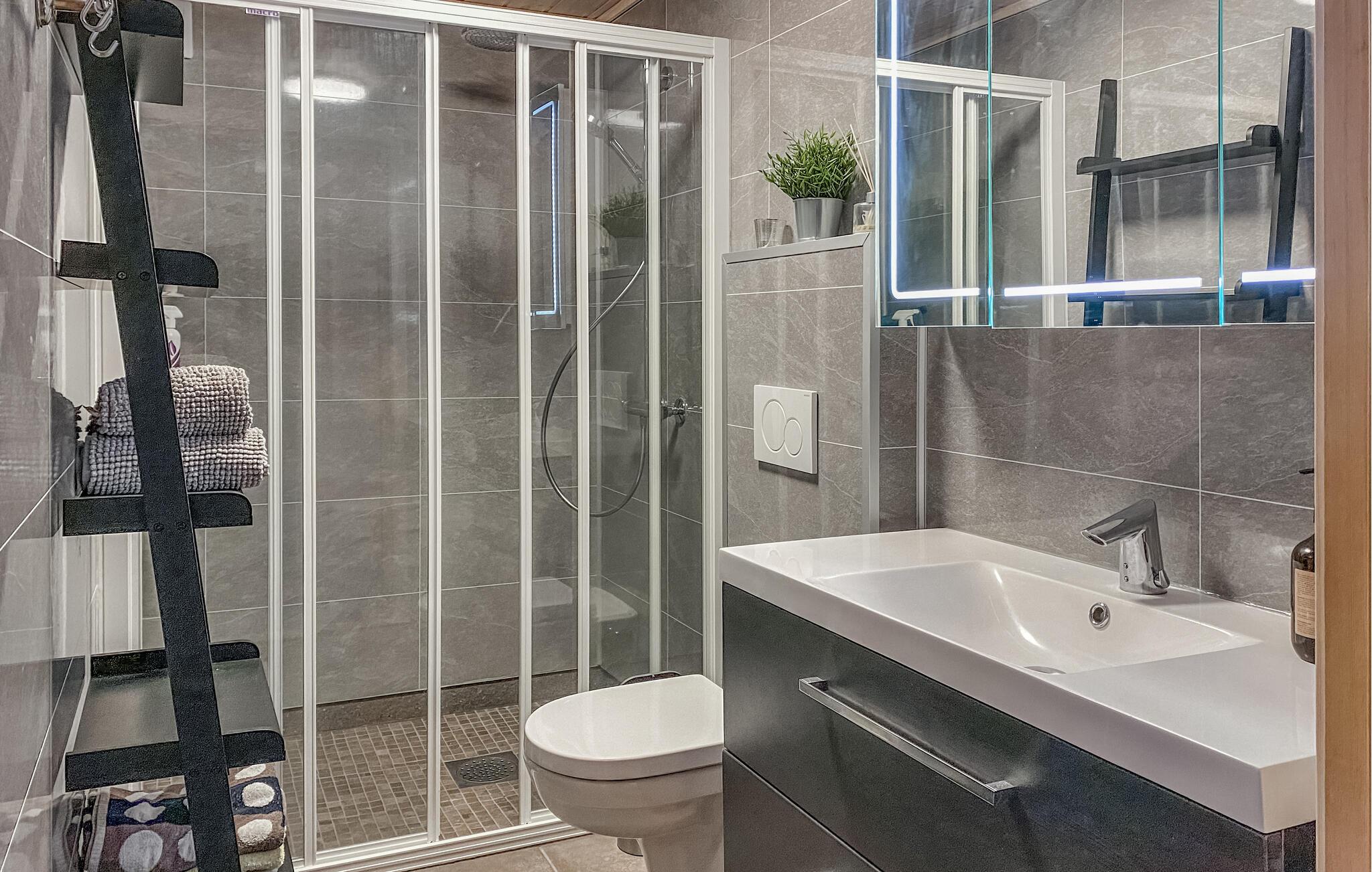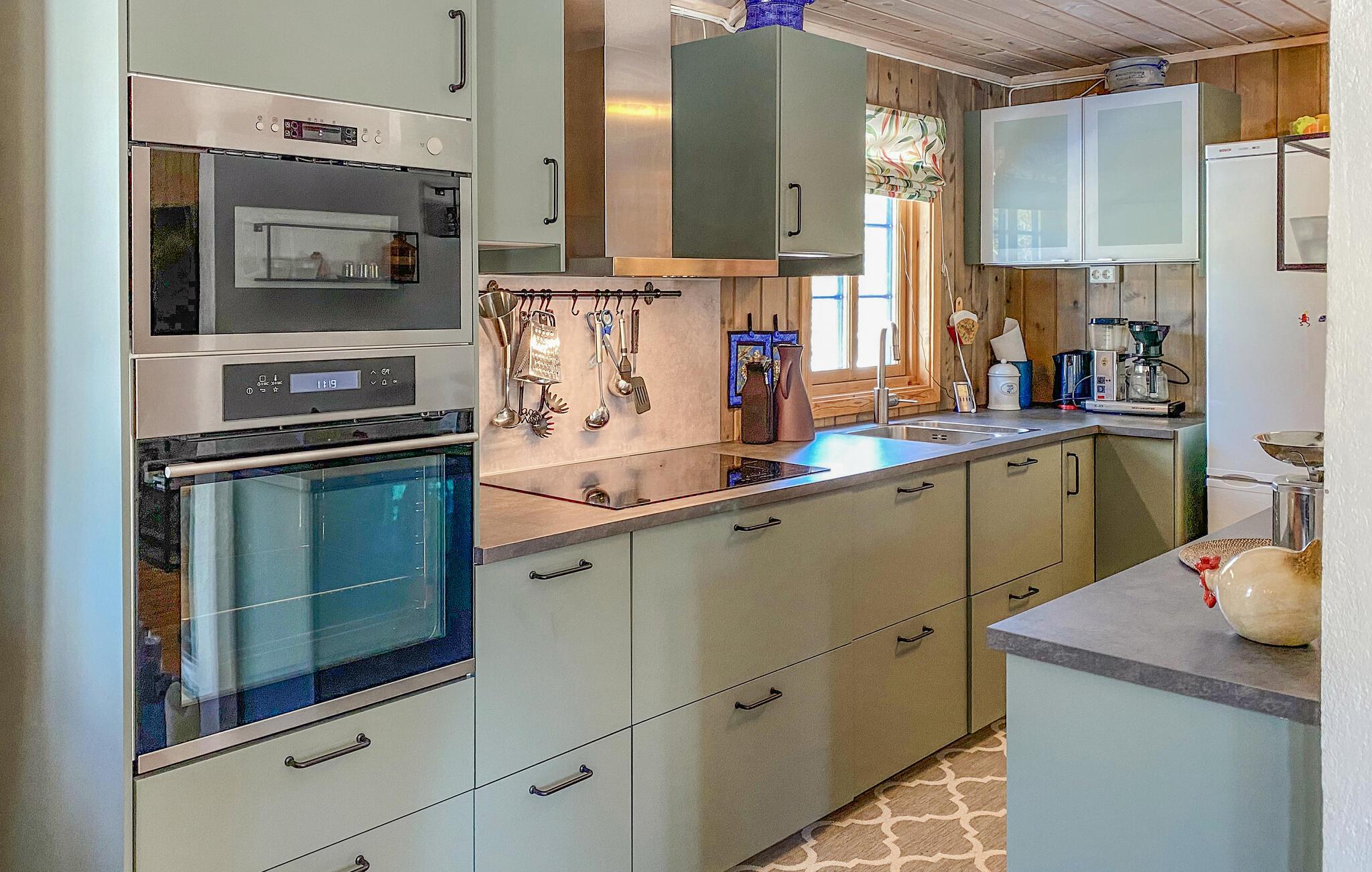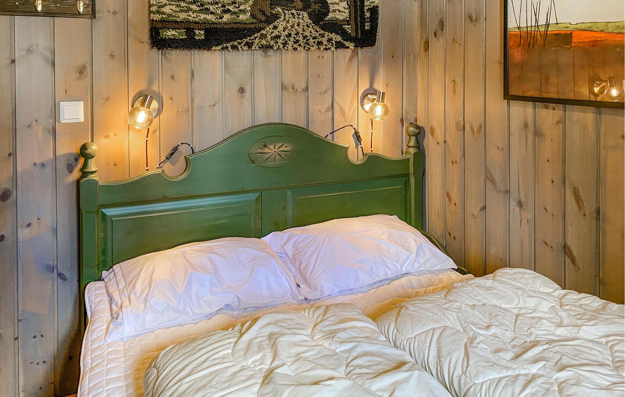 Inmitten malerischer Naturgebiete heißt Ihr charmantes Ferienhaus Sie willkommen zu einem unvergesslichen Aufenthalt. Das liebevoll eingerichtete und farbenfrohe Interieur schafft eine Atmosphäre der Entspannung und Sorglosigkeit. Starten Sie den Tag mit einem gemeinsamen Frühstück am Esstisch, während das Feuer im Kaminofen knistert, und finden Sie anschließend Ihren Lieblingsplatz zum Entspannen. Mehrere kuschelige Sofas bieten Raum für geselliges Beisammensein, während die Terrasse mit herrlichem Ausblick auf die Natur zum Verweilen einlädt und auch der ideale Ort für einen lustigen Grillabend ist.