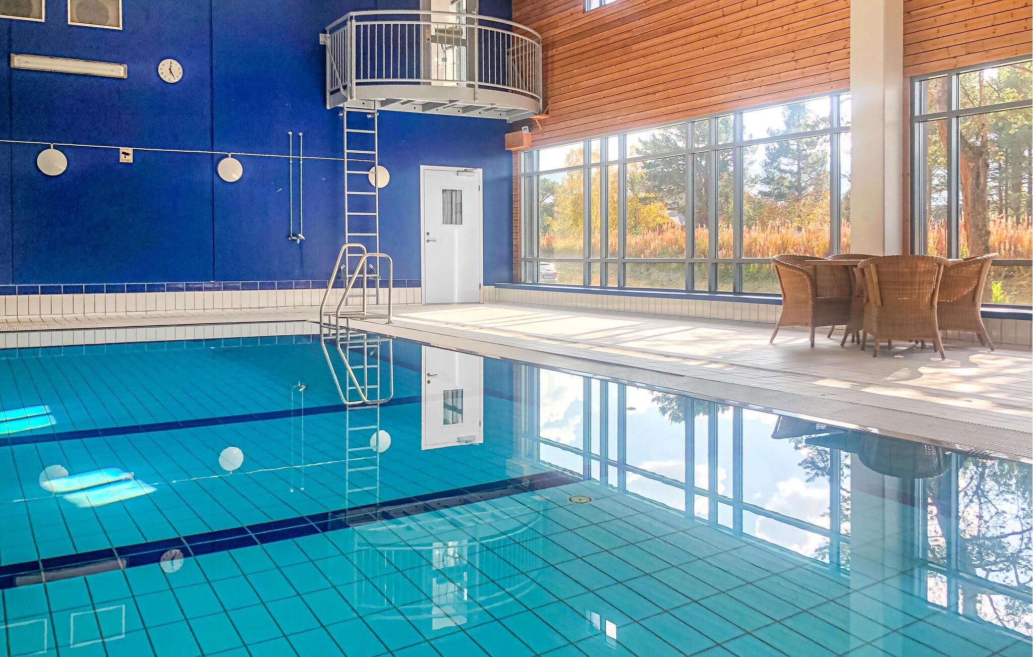 Nutzen Sie den gemeinschaftlichen Innenpool für ein paar ruhige Bahnen oder eine erfrischende Pause zwischendurch. Entspannen Sie sich nach einem aktiven Tag in der warmen Sauna, die Sie gemeinsam mit anderen nutzen, und lassen Sie die Ruhe auf sich wirken. Oder treffen Sie sich mit anderen Gästen am Grillplatz und genießen Sie den Abend in geselliger Runde.