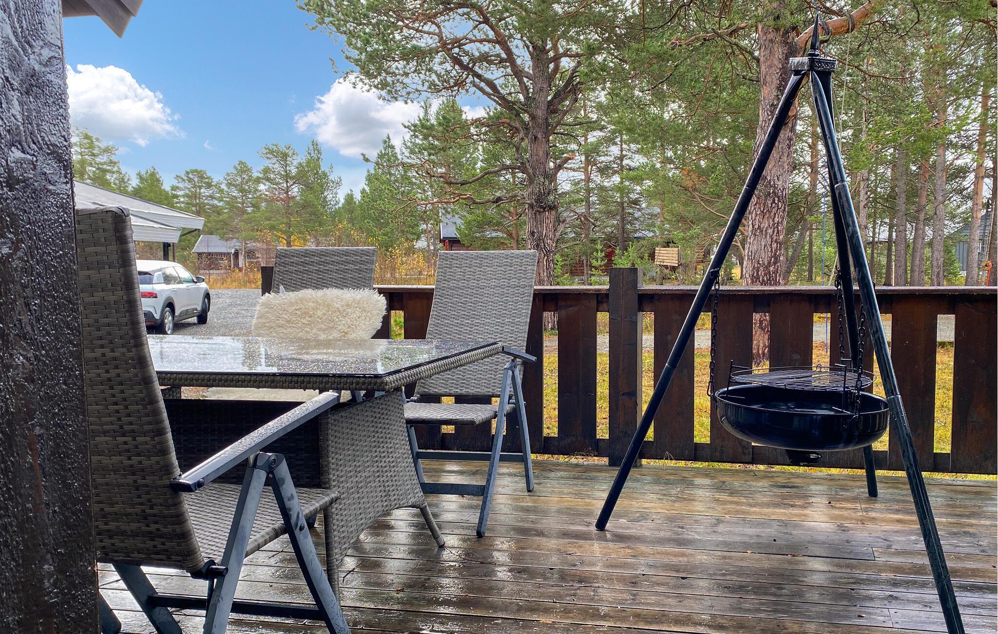 Treten Sie hinaus auf die Terrasse und atmen Sie die frische Bergluft. Nehmen Sie Platz an den komfortablen Gartenmöbeln, wärmen Sie sich an der Sonne oder bereiten Sie Ihr Abendessen am Grillplatz zu. Das Haus ist von hohen Bäumen umgeben und bietet Ihnen eine angenehme Mischung aus Geborgenheit und Weite.