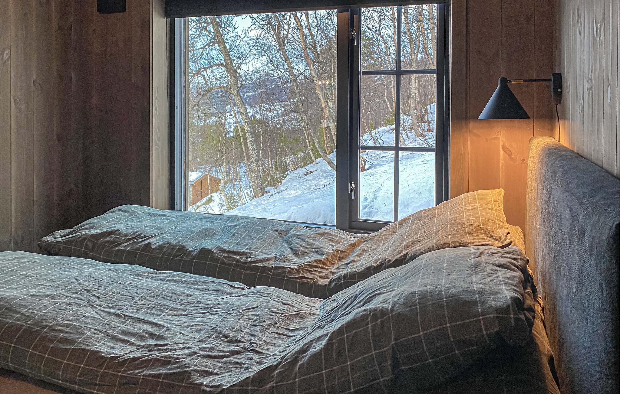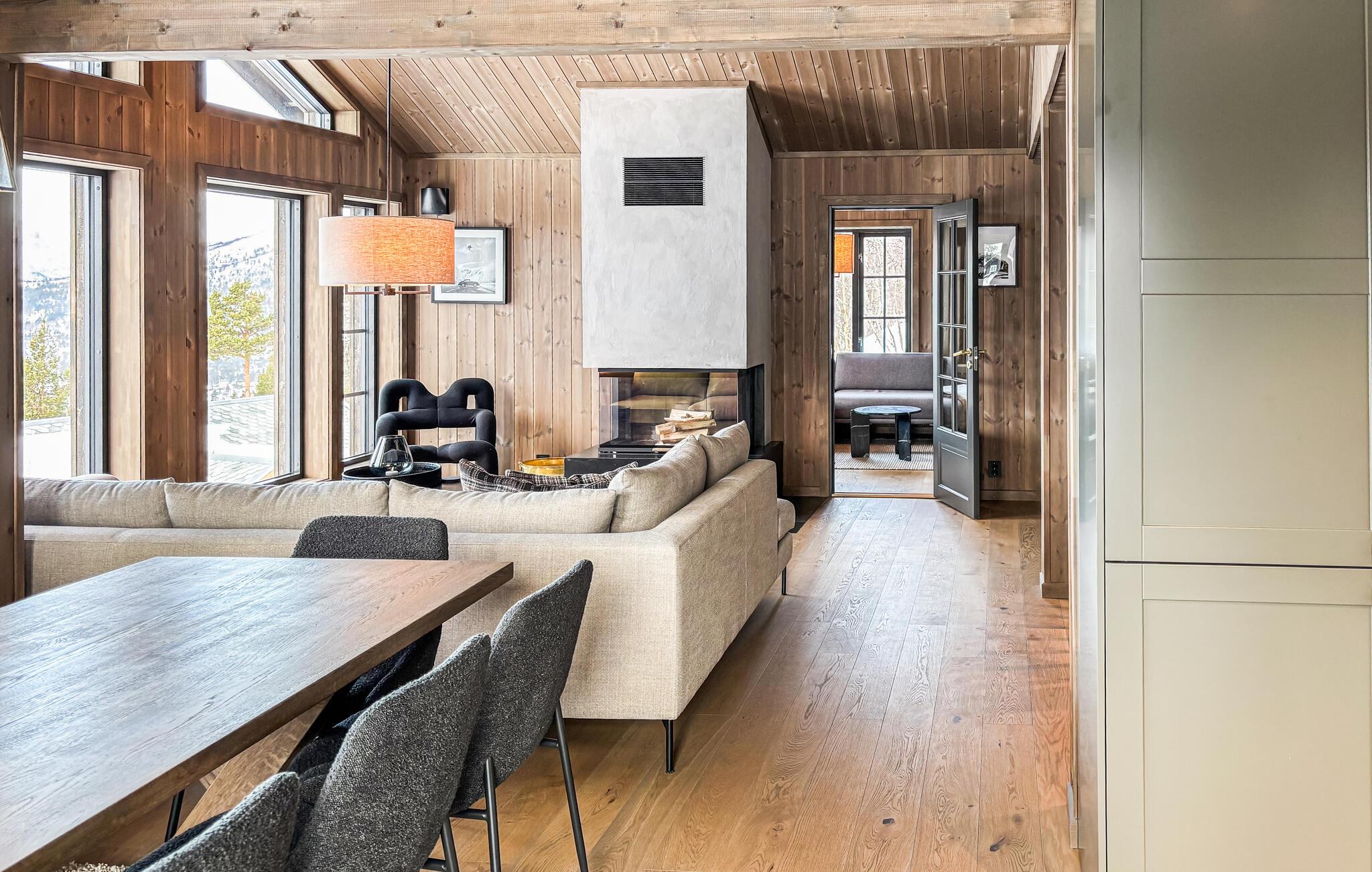 Dieses malerisch gelegene Haus empfängt Sie mit einer warmen, ruhigen Atmosphäre aus hellem Holz, großen Fenstern und modernem Mobiliar. Erholen Sie sich bei einer duftenden Tasse Kaffee auf dem Sofa und genießen Sie dabei den Blick in die wunderschöne Landschaft. Nach einem langen Tag in der Natur können Sie Körper und Geist in der Sauna entspannen und den Abend bei einem Glas Wein am Kamin ausklingen lassen.