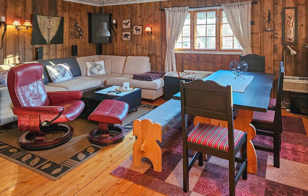 Willkommen in diesem gemütlichen Ferienhaus in Blefjell, die mit ihrer warmen Atmosphäre und ihrer Lage im Herzen der Natur besticht. Der großzügige Wohnbereich mit Kaminofen lädt Sie nach einem aktiven Tag zum Entspannen ein. Genießen Sie gesellige Stunden beim Kochen in der gut ausgestatteten Küche oder beim gemeinsamen Essen im Essbereich. Die rustikalen Details der Einrichtung schaffen eine heimelige Stimmung, und die Terrasse bietet Ihnen einen herrlichen Blick auf die umliegende Landschaft.