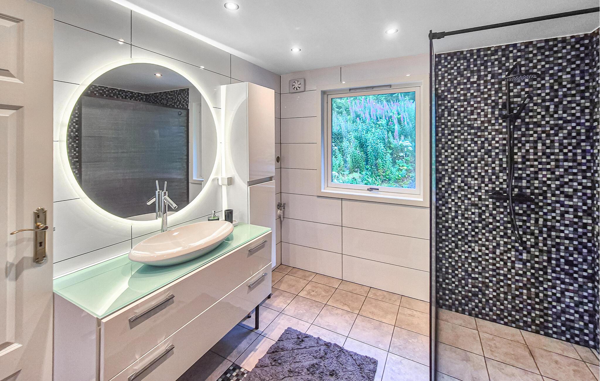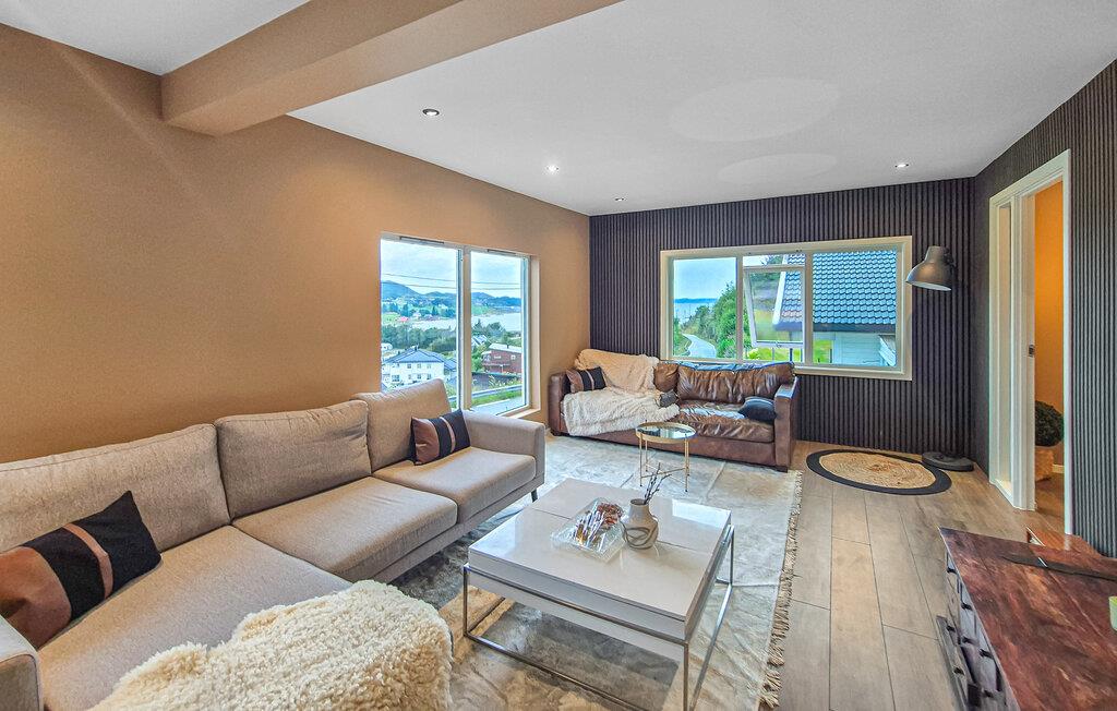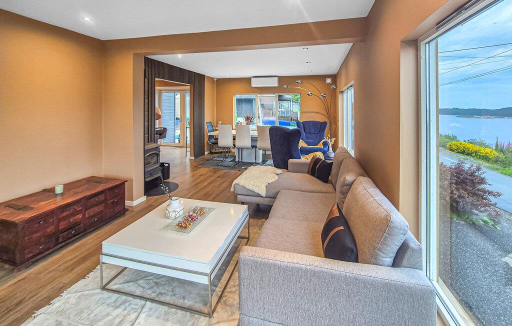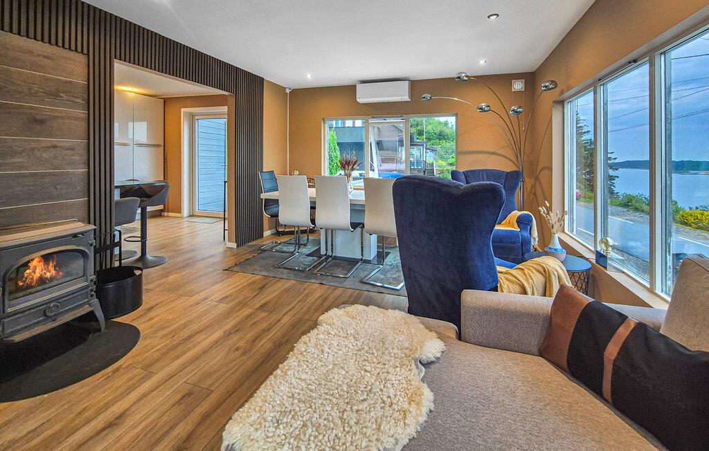 Dieses geschmackvoll eingerichtete Ferienhaus bietet Ihnen eine behagliche Basis, während Sie sich bei einem Aktivurlaub vom Alltag erholen. Zaubern Sie köstliche Gerichte in der modernen Küche und genießen Sie bei harmonischen Mahlzeiten den wunderschönen Blick auf den Fjord. Machen Sie es sich nach einem langen Tag an der frischen Meeresluft im Wohnzimmer gemütlich, lauschen Sie dem leisen Knistern des Kaminfeuers beim Lesen oder streamen Sie einen guten Film.