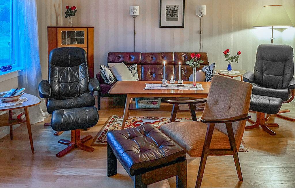 Ihr Ferienhaus in Digermulen bietet den idealen Rückzugsort für Naturfreunde. Eingebettet in die idyllische Landschaft der Lofoten, liegt das Haus ruhig und umgeben von grünen Wiesen und majestätischen Bergen. Genießen Sie die Morgensonne auf der Terrasse, während Sie den ersten Kaffee des Tages trinken und den Blick auf die umliegende Natur schweifen lassen. Im Inneren erwartet Sie eine gemütliche Atmosphäre mit einer Mischung aus traditioneller und moderner Einrichtung. Das Wohnzimmer lädt mit komfortablen Sesseln und einer einladenden Sofaecke zu entspannten Abenden ein. Nutzen Sie die Küche, um kulinarische Köstlichkeiten zuzubereiten, und nehmen Sie Platz am Esstisch, wo der Blick durch das große Fenster besonders schön ist.