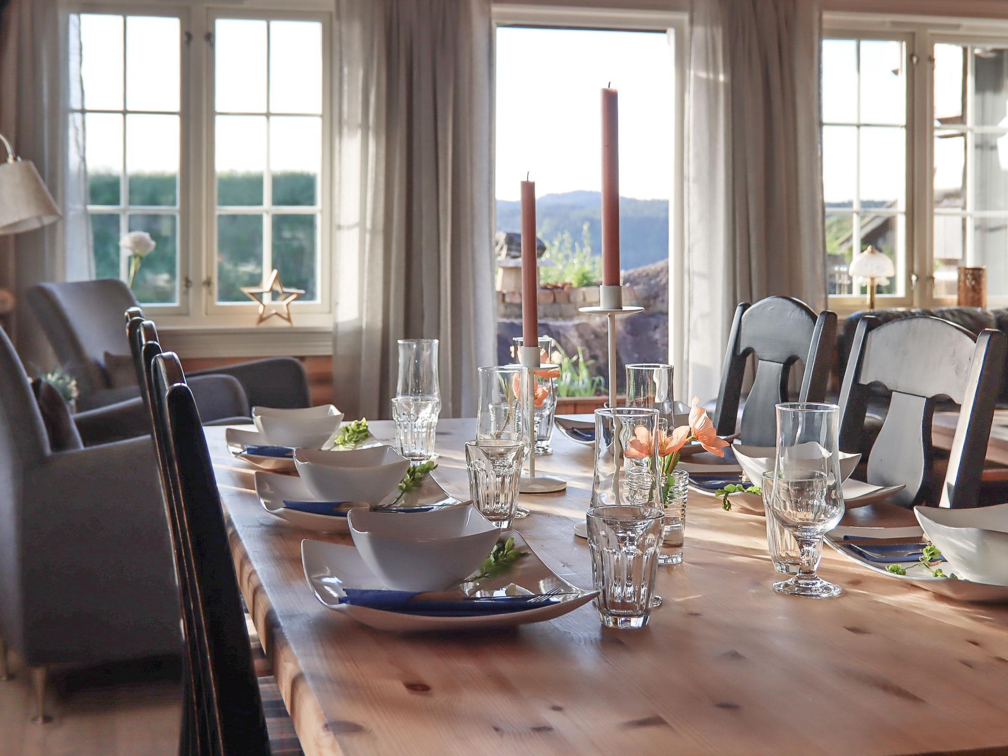 "Lislebu", 5-room house 100 m2 on 2 levels. Comfortable and cosy furnishings: open living/dining room with Scandinavian wood stove, dining table, satellite TV and international TV channels. Exit to the terrace. 1 room with 1 double bed (180 cm, length 200 cm). Open kitchen (oven, dishwasher, 4 ceramic glass hob hotplates, microwave, freezer, electric coffee machine). Shower/WC, sep. WC. Electric heating, forced-air heating. Upper floor: 2 rooms, each room with 1 french bed (140 cm, length 200 cm). 1 room with 2 double sofabeds (120 cm, length 190 cm). Exit to the balcony. Wooden floors. Balcony, large terrace partly roofed. Barbecue (portable), deck chairs, sitting area. Beautiful view of the lake and the mountains. Facilities: washing machine, iron. Internet (WiFi, free). Please note: non-smoking house. Maximum 2 pets/ dogs allowed. Smoke alarm, fire extinguisher. Bed layout is flexible. There are more sleeping options available than the maximum number of people allowed which may, however, not be exceeded. 924531169