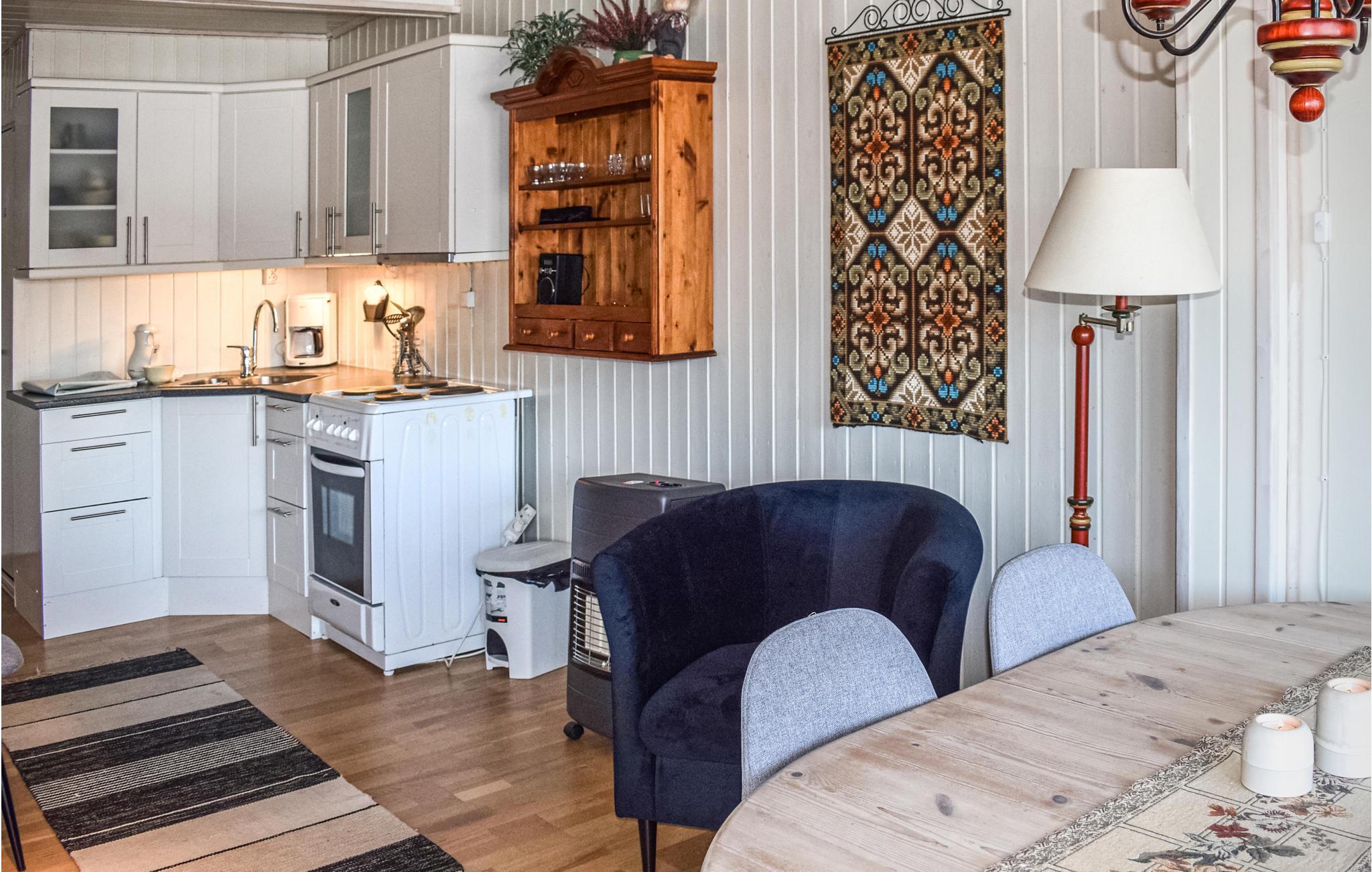 Ihr charmantes Ferienhaus auf Fagerfjell ist der ideale Rückzugsort für Naturliebhaber und Abenteurer. Gelegen in einem Naturschutzgebiet, bietet es alles, was Sie für einen erholsamen und aktiven Urlaub benötigen. Beginnen Sie Ihren Tag mit einer heißen Tasse Kaffee auf dem Balkon, während Sie die spektakuläre Aussicht auf die umliegenden Berge genießen. Im kompakten Inneren erwartet Sie eine gemütliche Atmosphäre mit moderner Ausstattung. Der einladende Wohnbereich mit Plüschsofa und Kerzenlicht bietet den idealen Ort, um die Abende in Ruhe ausklingen zu lassen. Machen Sie es sich bequem und genießen Sie den Blick auf das Bergpanorama aus den großen Fenstern.