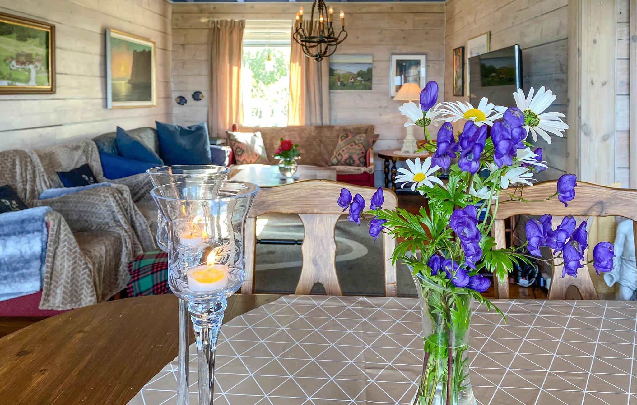 Im Inneren erwartet Sie ein einladendes Wohnzimmer mit Holzwänden und einer liebevoll gestalteten Einrichtung. Machen Sie es sich hier gemütlich, vielleicht bei einem Buch und einer Tasse Tee. Der Essbereich mit seinen großen Fenstern ermöglicht einen wunderbaren Blick auf das Meer und schafft die ideale Wohlfühl-Atmosphäre für gemeinsame Mahlzeiten. Kochen Sie in der gemütlichen Essküche und erleben Sie die Freude an regionalen norwegischen Spezialitäten.