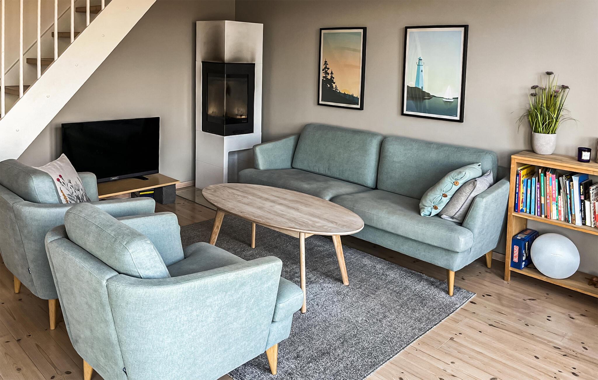Erleben Sie eine erholsame Auszeit inmitten der idyllischen südnorwegischen Natur. Ihr stilvoll eingerichtetes Ferienhaus bietet Ihnen eine schöne Mischung aus Komfort, Gemütlichkeit und atemberaubender Aussicht. Betreten Sie den behaglichen Wohnbereich mit seinen großen Fenstern, die Ihnen einen spektakulären Blick auf den Fjord bieten. Machen Sie es sich auf den modernen Sofas gemütlich, genießen Sie ein gutes Buch oder entspannen Sie sich vor dem Kaminofen. Bereiten Sie in der offenen Küche Ihre Mahlzeiten mit frischen Zutaten zu und genießen Sie diese am großen Esstisch mit Panorama-Aussicht. Nutzen Sie auch die gemütliche Leseecke und lassen Sie sich in einem der stilvollen Sessel nieder.