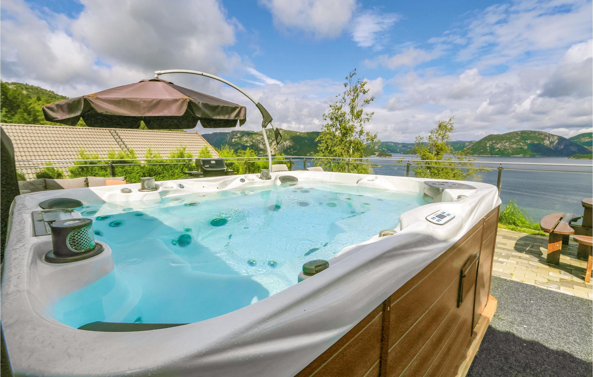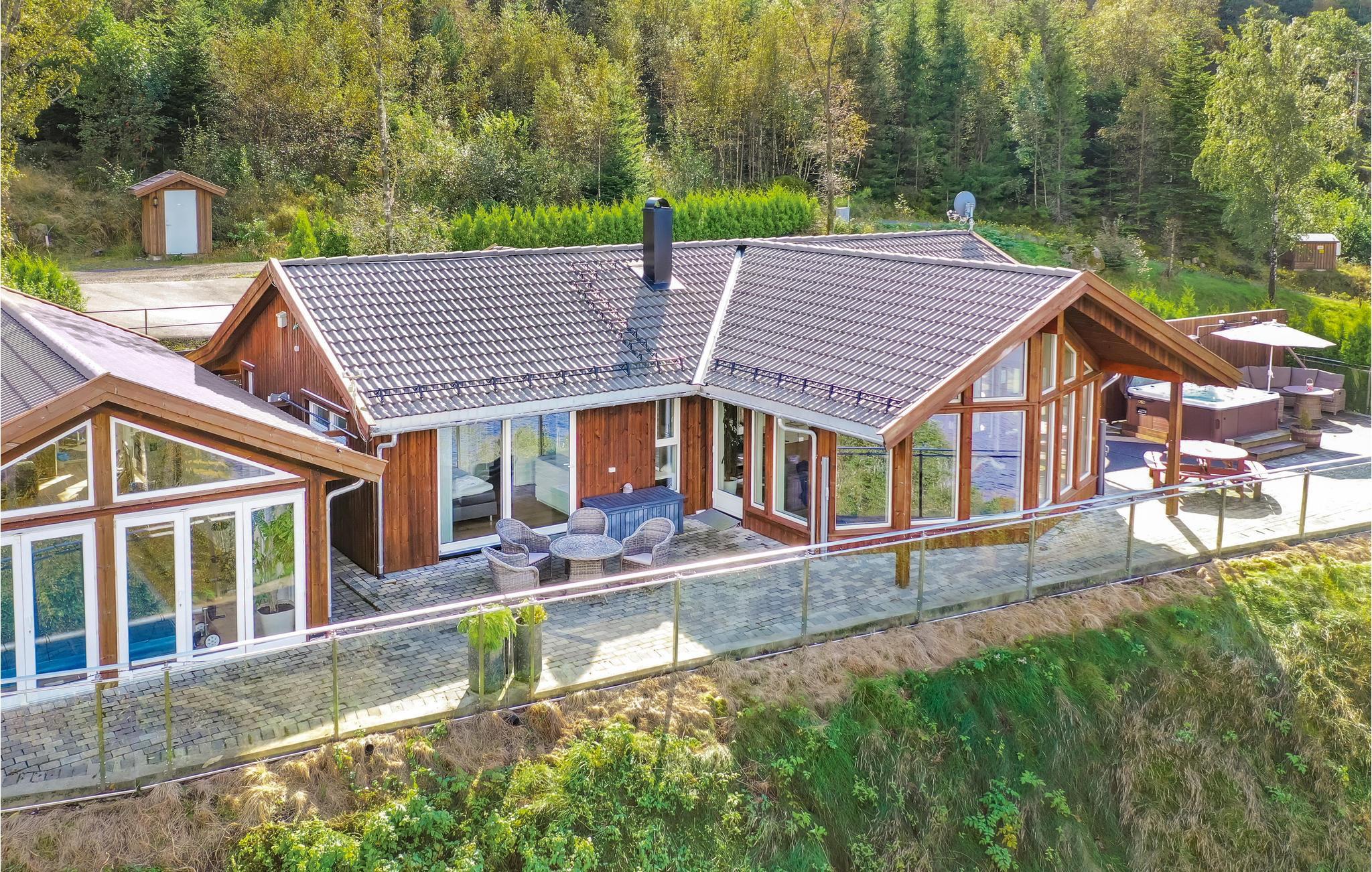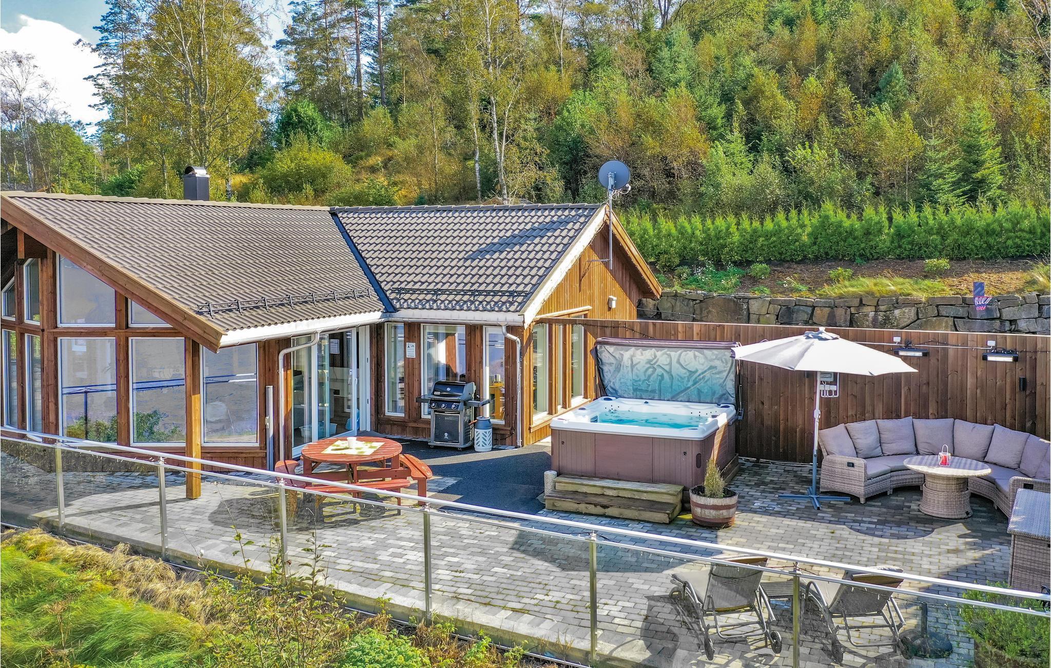 Tolles Ferienhaus mit hohem Standard und fantastischem Blick über den Fjord. Das Ferienhaus verfügt über eine große Terrasse mit mehreren Sitzbereichen und einem Grill, sie ist ideal für lange Urlaubstage eignet. Das Ferienhaus liegt auf einem sonnigen Grundstück und im Hochsommer ist es vom frühen Morgen bis zum späten Abend sonnig. Das Haus verfügt über einen schönen Pool mit Gegenstromanlage und einen großen Poolraum, ein perfekter Ort zum Entspannen und Spielen für die ganze Familie. Der Pool hat eine konstante Wassertemperatur von 28-32 ° C. Ansonsten bietet das Poolhaus Musikwiedergabemöglichkeiten über AUX-Kabel. Im Ferienhaus finden Sie eine gut ausgestattete Küche mit amerikanischem Kühlschrank und Bartresenlösung. Unterhalb des Hauses gibt es einen Steg und ein Boot. Es sind verschiedene Boote mietbar. Hier können Sie im Fjord angeln oder mit dem Boot nach Farsund oder hinaus auf das Meer fahren. Es gibt auch mehrere, feine Süßwasser für spannendes Süßwasserfischen (an die Angellizenz denken). Das Ferienhaus und das Poolhaus sind rollstuhlgerecht. Besuchen Sie das Sørlandsbadet (ca. 30 km) für Spa, Bad und Wellness. Hier ist alles bereit für einen spannenden Norwegenurlaub für Jung und Alt.