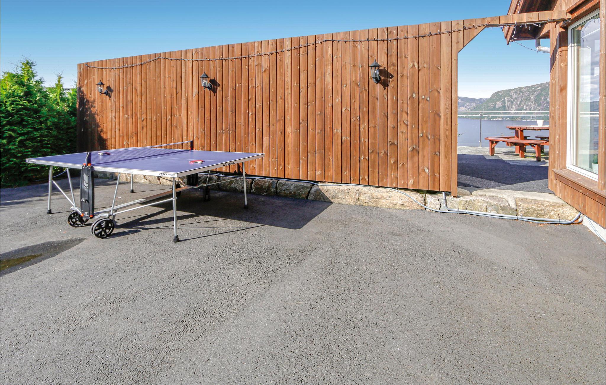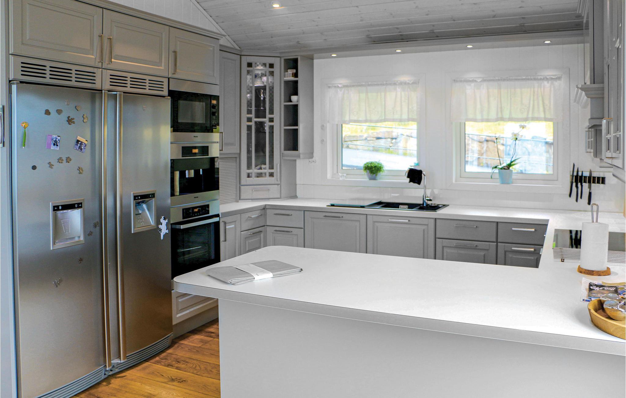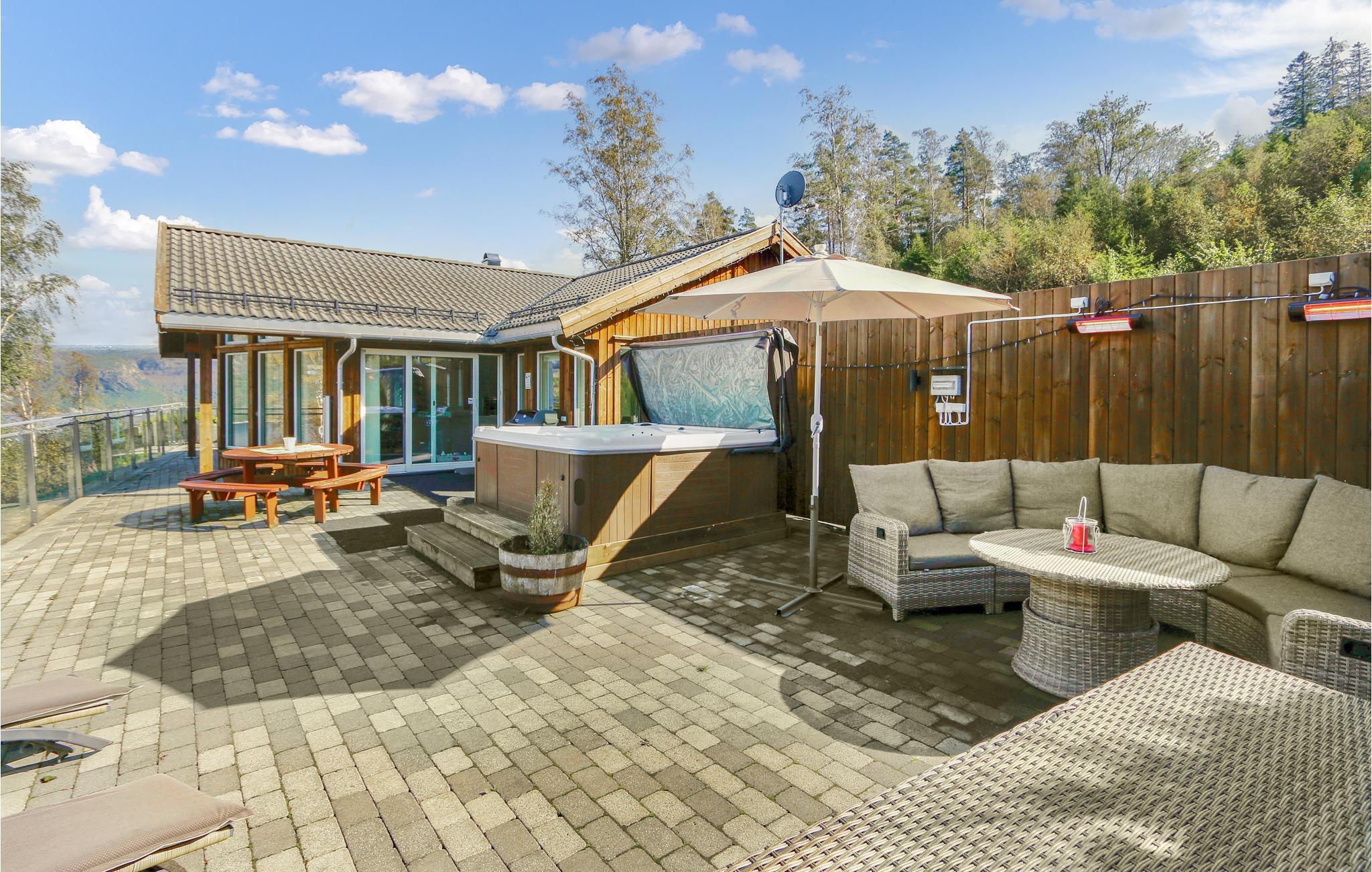 Tolles Ferienhaus mit hohem Standard und fantastischem Blick über den Fjord. Das Ferienhaus verfügt über eine große Terrasse mit mehreren Sitzbereichen und einem Grill, sie ist ideal für lange Urlaubstage eignet. Das Ferienhaus liegt auf einem sonnigen Grundstück und im Hochsommer ist es vom frühen Morgen bis zum späten Abend sonnig. Das Haus verfügt über einen schönen Pool mit Gegenstromanlage und einen großen Poolraum, ein perfekter Ort zum Entspannen und Spielen für die ganze Familie. Der Pool hat eine konstante Wassertemperatur von 28-32 ° C. Ansonsten bietet das Poolhaus Musikwiedergabemöglichkeiten über AUX-Kabel. Im Ferienhaus finden Sie eine gut ausgestattete Küche mit amerikanischem Kühlschrank und Bartresenlösung. Unterhalb des Hauses gibt es einen Steg und ein Boot. Es sind verschiedene Boote mietbar. Hier können Sie im Fjord angeln oder mit dem Boot nach Farsund oder hinaus auf das Meer fahren. Es gibt auch mehrere, feine Süßwasser für spannendes Süßwasserfischen (an die Angellizenz denken). Das Ferienhaus und das Poolhaus sind rollstuhlgerecht. Besuchen Sie das Sørlandsbadet (ca. 30 km) für Spa, Bad und Wellness. Hier ist alles bereit für einen spannenden Norwegenurlaub für Jung und Alt.
