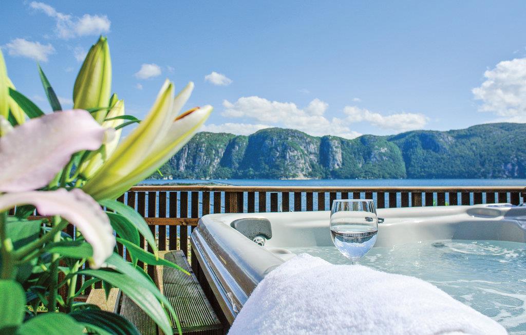 Träumen Sie davon, beim Aufwachen einen fantastischen Blick auf den Fjord zu genießen oder ein warmes Bad im Whirlpool im Freien zu nehmen, während Sie die Ausflüge des Tages planen, dann könnte dies genau das richtige Ferienhaus für Sie sein. Nur wenige Schritte vom Fjord entfernt, lädt es mit hellen und wohnlichen Räumen das ganze Jahr dazu ein, in angenehmem Ambiente zu entspannen. Lassen Sie sich nach einem wohltuenden Saunagang auf den Sofas nieder, genießen Sie den herrlichen Blick auf das Wasser durch große Panoramafenster und sorgen Sie mit einem Feuer im Kaminofen für eine besonders behagliche Atmosphäre.