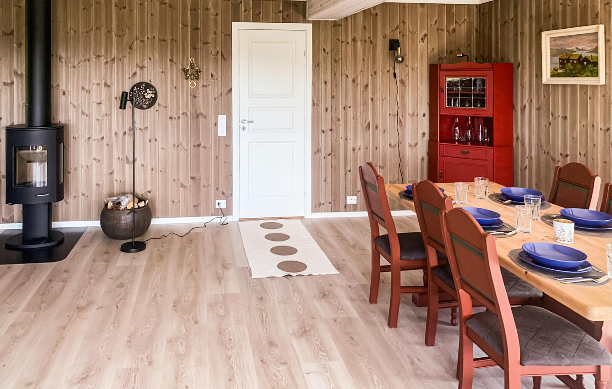 In diesem charmanten Haus vereinen sich Komfort und Behaglichkeit zu einem harmonischen Ganzen. Holzvertäfelungen und rustikale Möbel sorgen für eine entspannte Atmosphäre, bequeme Sofas zu einer erholsamen Auszeit vom Alltag einladen. Wenn es draußen kühler ist, entzünden Sie den Kaminofen und entspannen sich bei wohliger Wärme. In der modernen Küche können Sie gemeinsam kochen und Ihre leckeren Mahlzeiten am großen Esstisch genießen.