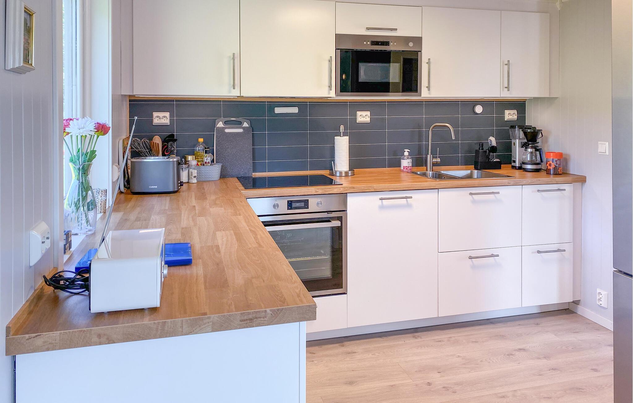 Genießen Sie die friedliche Umgebung in Ihrem bezaubernden Ferienhaus in Fiksdal und lassen Sie den Alltag hinter sich. Dieses Haus liegt malerisch direkt am Fjord und bietet Ihnen eine herrliche Aussicht, die Sie unter anderem vom gemütlichen Wohnzimmer aus bewundern können. Machen Sie es sich auf dem Sofa bequem, lesen Sie ein Buch und lassen Sie den Blick über die weite Landschaft schweifen.
