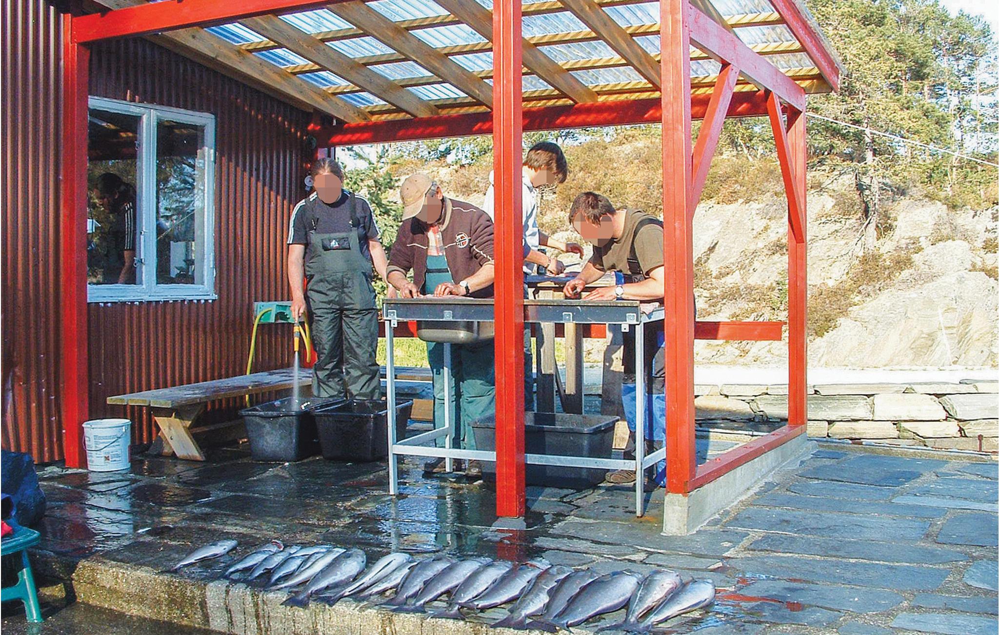 Vier schöne Fischerhäuser (N19601-04) liegen in einem tollen Strandgebiet am Hardangerfjord. Die Häuser liegen Wand an Wand, sind aber vollständig lärmisoliert und haben je eine grosse, gut abgeschirmte Terrasse mit Aussicht über den Fjord und das Gebirge. Hier finden Sie alles für variierte und aktive Ferien in schöner Natur. Der Fjord ist fischreich und komplette Angelausstattungen können gemietet werden. Mehrere Sandstrände und Bootshäfen, Wanderwege, Naturgolf, Ballplätze und ein Naturreservat anbei. Etliche zusätzliche Motorboote mietbar, deren meisten mit Echolot ausgestattet sind. Vorbestellung vonnöten! Gemeinsam: Sauna, Billiard und Tischtennis. Viele Ausflugsmöglichkeiten.