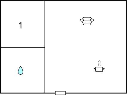 Badezimmer (nr. 1) - WC. Warmes und kaltes Wasser. Dusche
