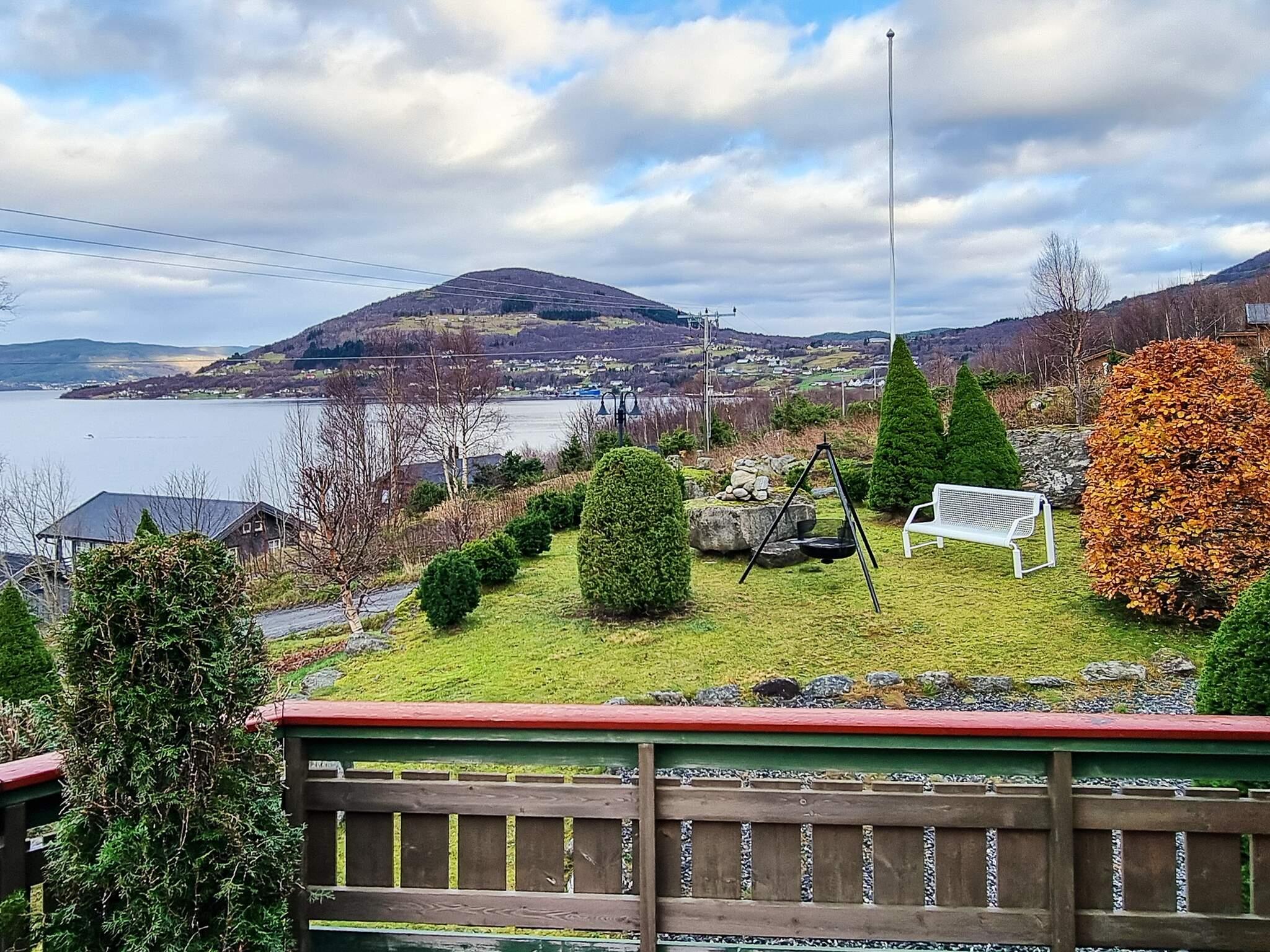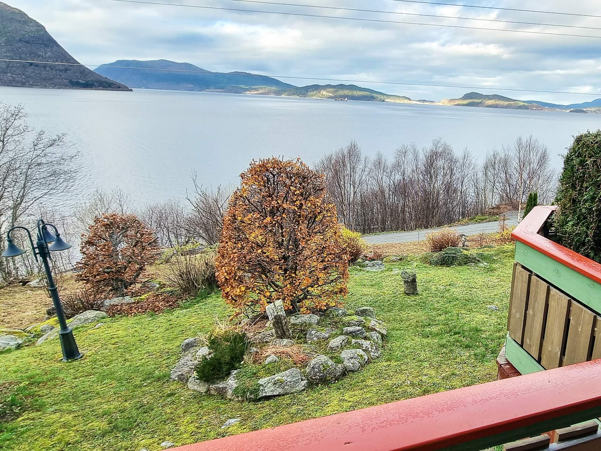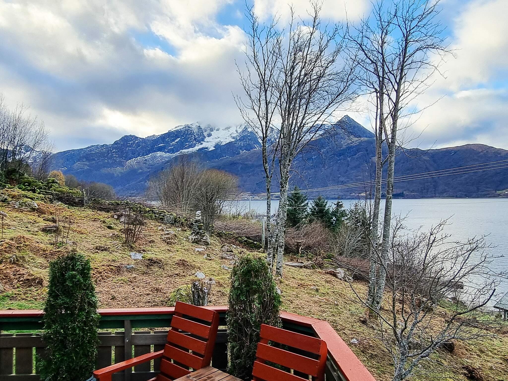 Es liegt mit unverstellter Panorama-Aussicht zum Wasser, nur 80 m vom Fjordufer! Im Hochsommer hat man hier den ganzen Tag über Sonne, ab morgens um 4:30 Uhr und bis zum Sonnenuntergang gegen 23:30 Uhr. Genießen Sie den großartigen Ausblick zu den Inseln und den steilen Felshängen des Fjordes! Hinter dem Haus stehen einige weitere Ferienhäuser. Von der 45 m² gr. offenen sowie der 15 m² gr. überdachten Terrasse hat man natürlich freien Blick auf die vorbeiziehenden, großen Passagierdampfer auf ihrem Weg nach Geiranger oder Øye. Das Grundstück am Hang wurde ansprechend angelegt.