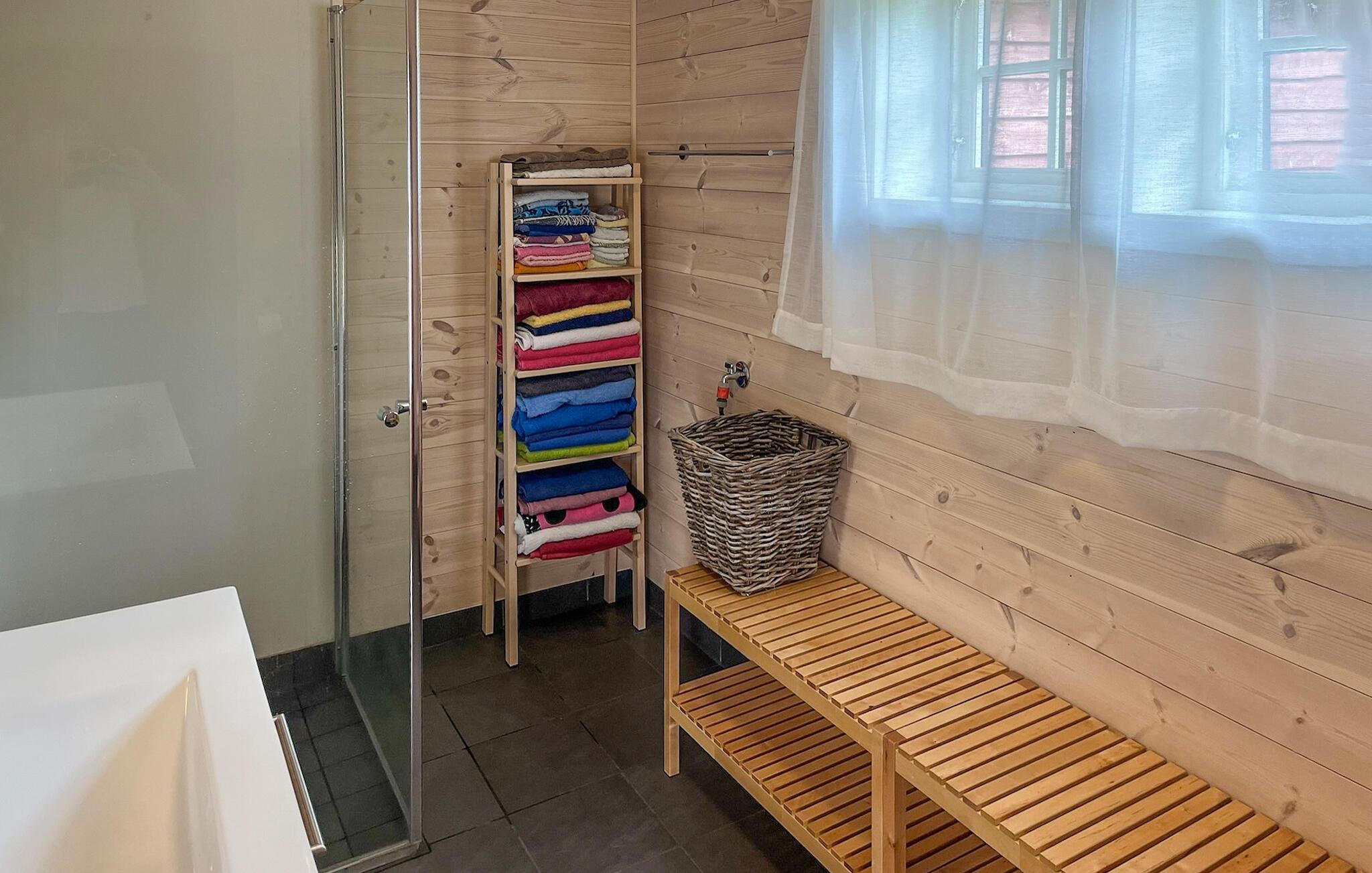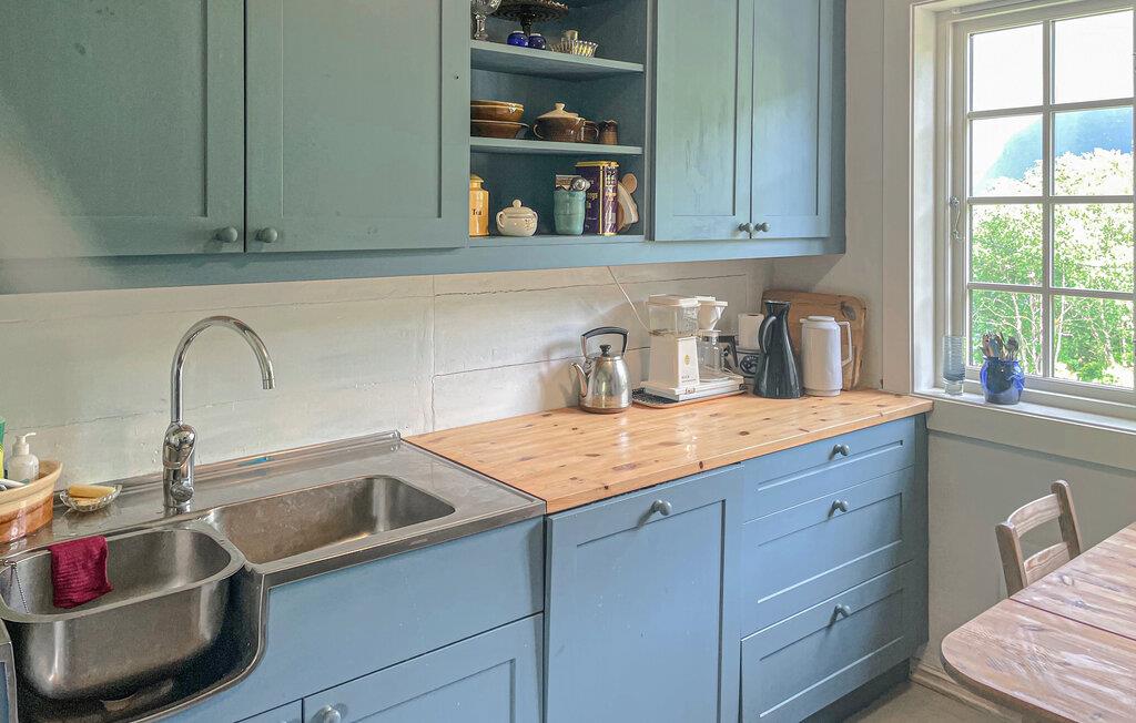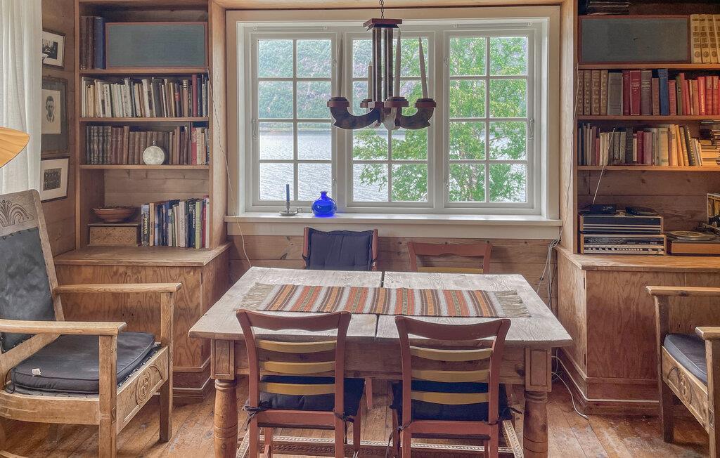 In Ihrem gemütlichen Ferienhaus, eingebettet in die ruhige norwegische Landschaft, werden Sie schon beim Betreten des Hauses von der warmen und einladenden Atmosphäre empfangen. Diese wird durch die liebevoll gestalteten Holzelemente und den klassischen Stil noch verstärkt. Der Wohnbereich lädt mit seinen bequemen Sitzmöbeln und dem gemütlichen Kamin zu entspannenden Stunden ein. Hier können Sie sich mit einem guten Buch zurückziehen oder den Blick durch die großen Fenster auf den funkelnden See genießen. Der rustikale Charme der Küche fügt sich nahtlos in das Ambiente des Hauses ein. Hier können Sie nach Herzenslust kochen und Ihre Mahlzeiten anschließend im Essbereich mit herrlichem Seeblick einnehmen.