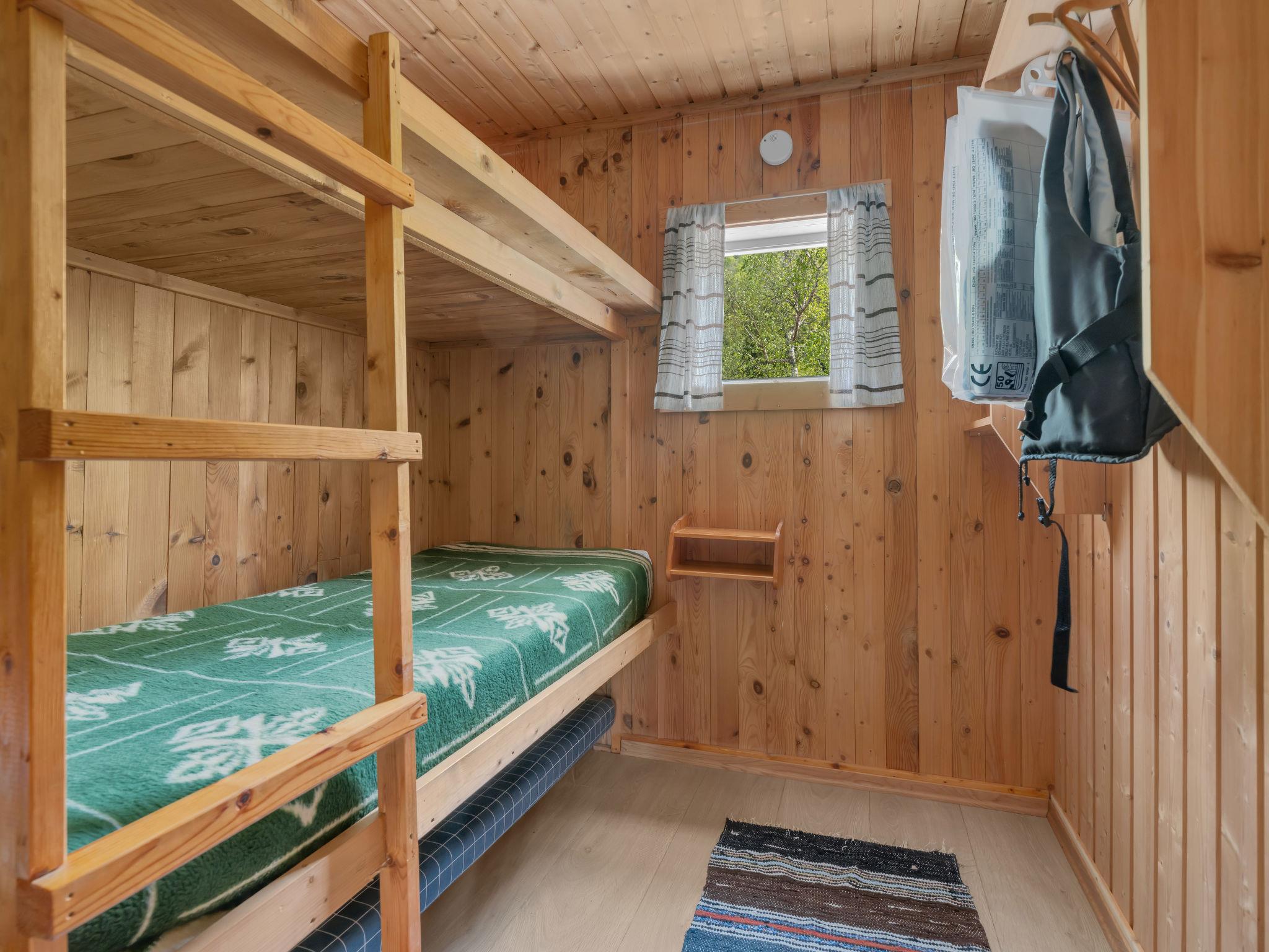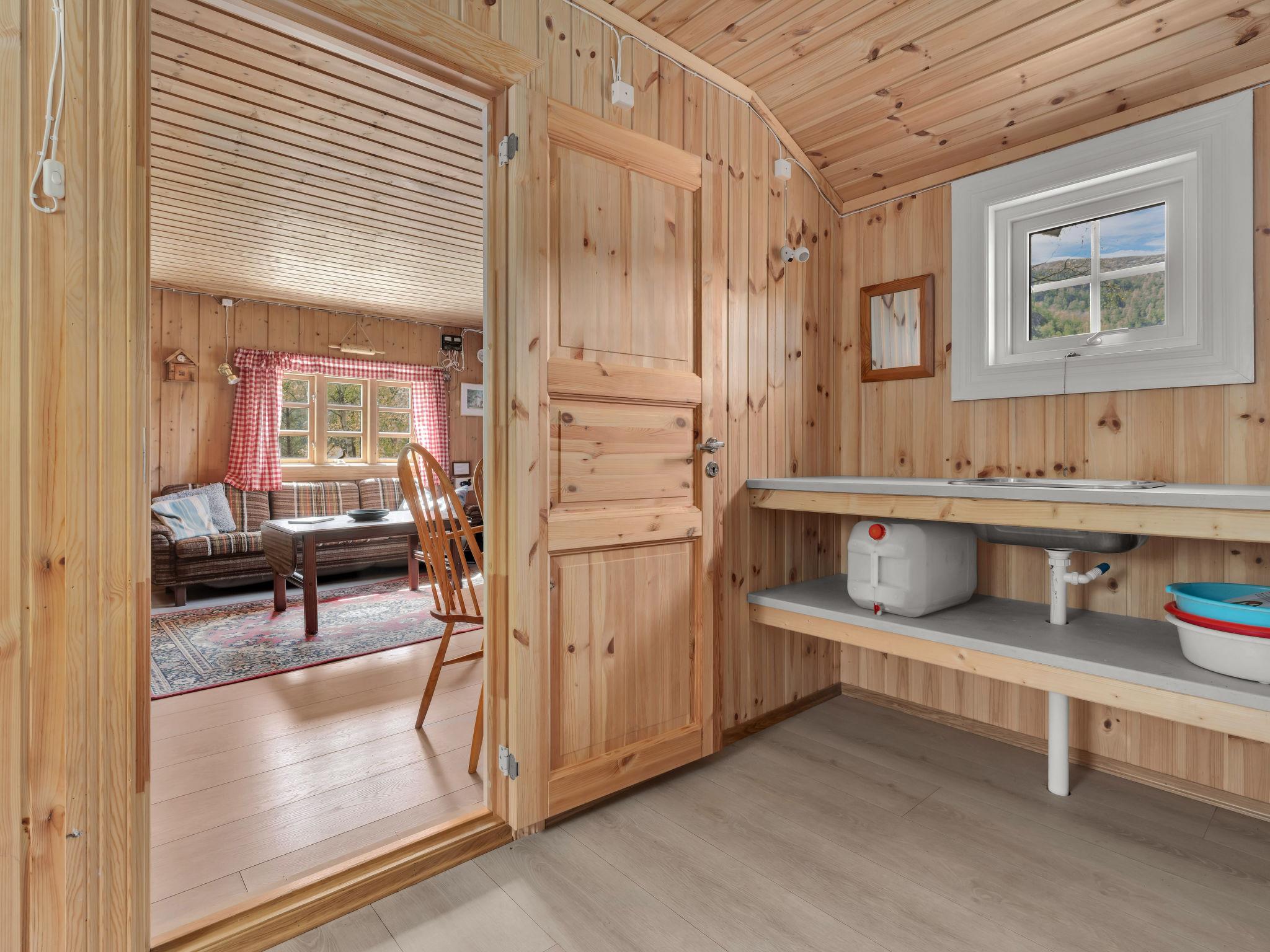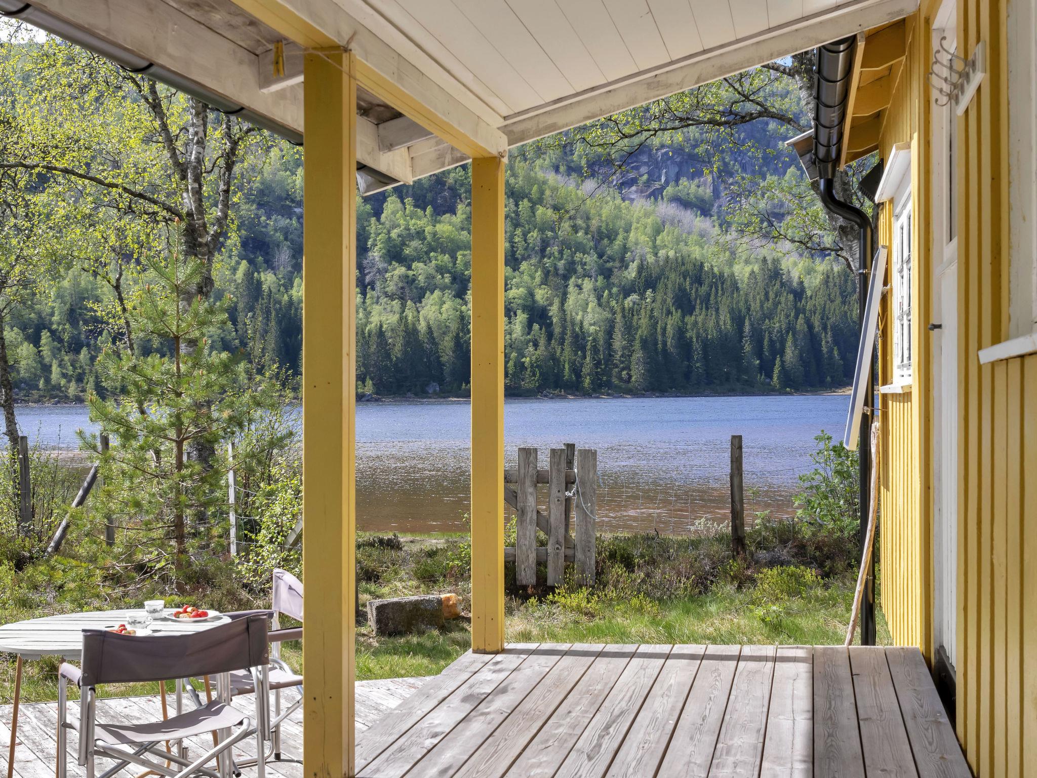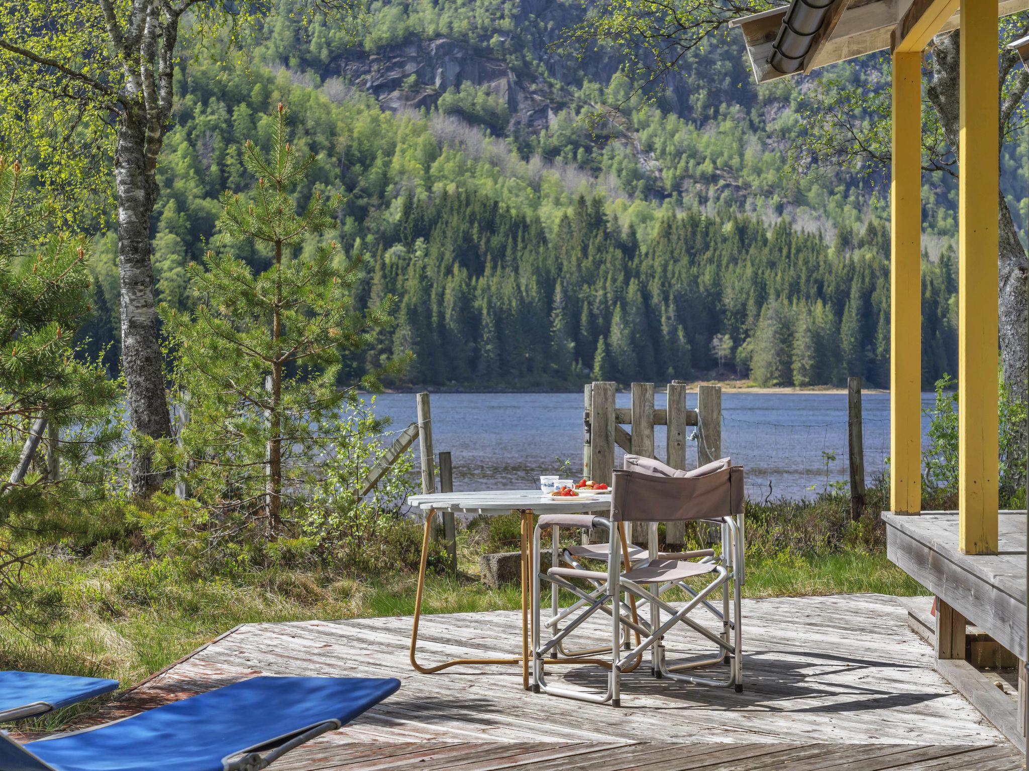 "Oddbu", 4-room house 45 m2. Object suitable for 2 adults + 2 children. Partly, simple furnishings: living/dining room with Scandinavian wood stove and dining table. Exit to the terrace. 1 open room with 1 x 2 bunk beds (90 cm, length 200 cm). 1 room with 2 beds (80 cm, length 200 cm). Open kitchen (Gas stove, 3 gas rings). View of the lake. Please note: non-smoking house. Maximum 1 pet/ dog allowed. Smoke alarm, fire extinguisher. Note: gas fridge without freezer. No running water. Drinking water from the lake, from the store or from the well with hand pump, next to the house. Simple dry toilet about 14 m. Low voltage electricity for lighting, no outlets. Possible to charge one mobile phone. 924531169