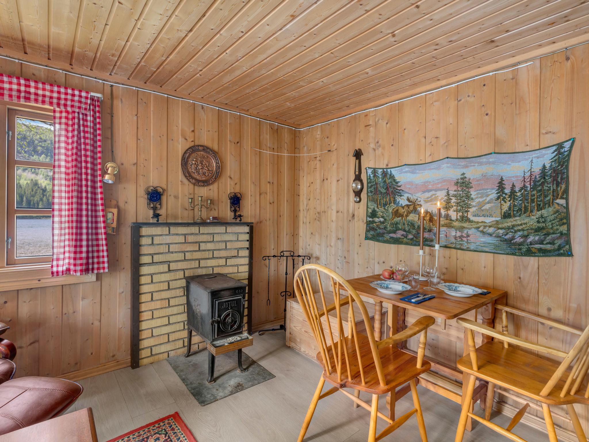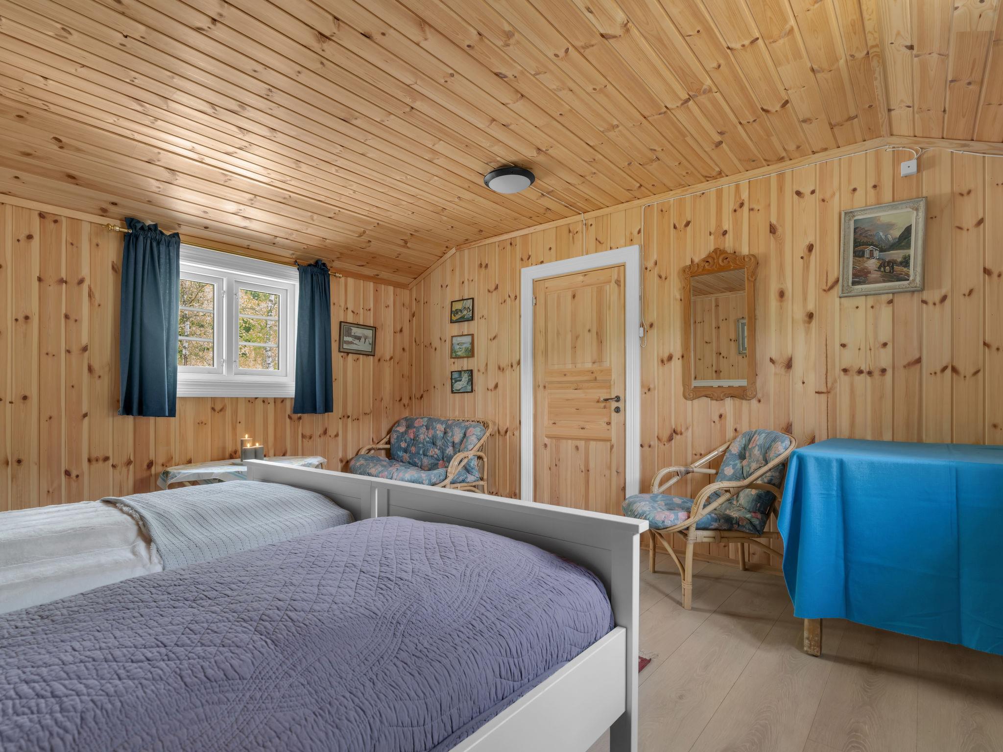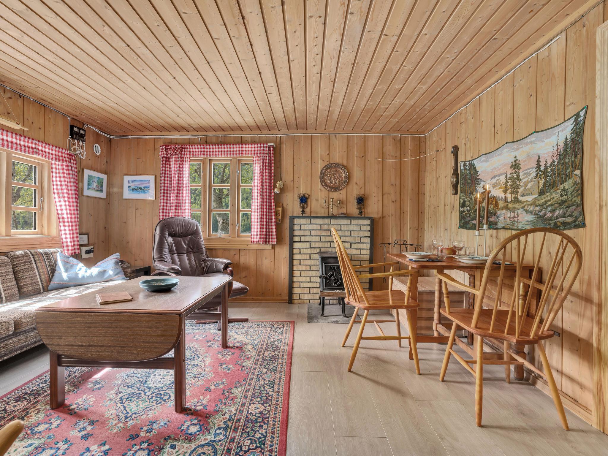 "Oddbu", 4-room house 45 m2. Object suitable for 2 adults + 2 children. Partly, simple furnishings: living/dining room with Scandinavian wood stove and dining table. Exit to the terrace. 1 open room with 1 x 2 bunk beds (90 cm, length 200 cm). 1 room with 2 beds (80 cm, length 200 cm). Open kitchen (Gas stove, 3 gas rings). View of the lake. Please note: non-smoking house. Maximum 1 pet/ dog allowed. Smoke alarm, fire extinguisher. Note: gas fridge without freezer. No running water. Drinking water from the lake, from the store or from the well with hand pump, next to the house. Simple dry toilet about 14 m. Low voltage electricity for lighting, no outlets. Possible to charge one mobile phone. 924531169