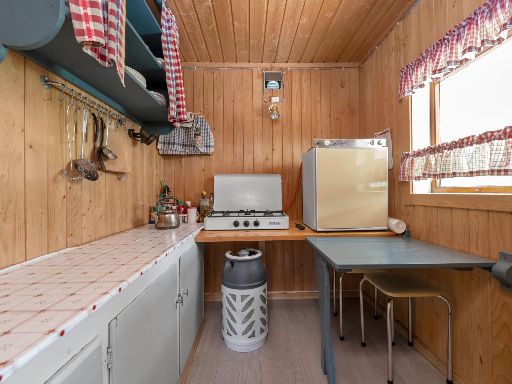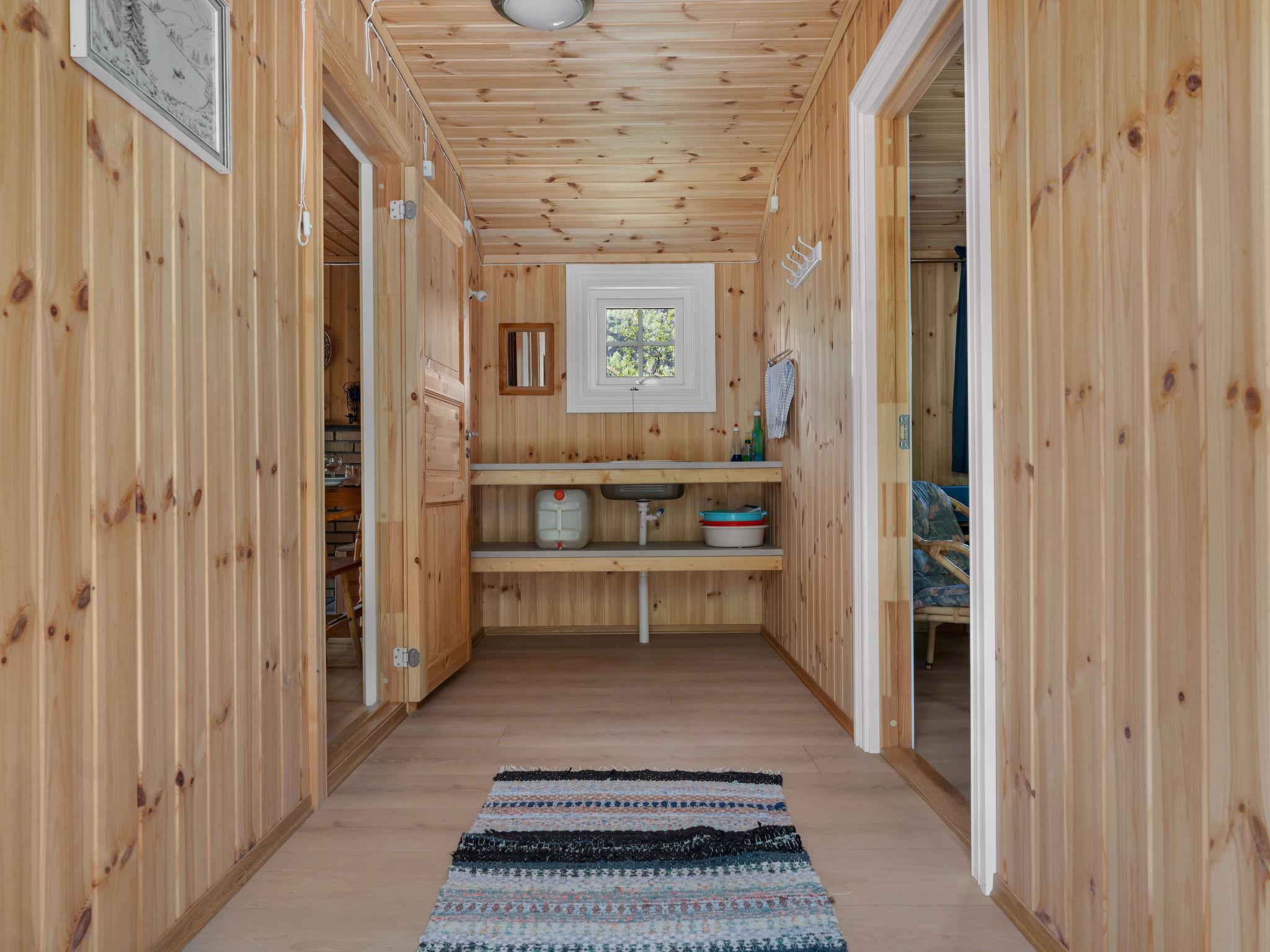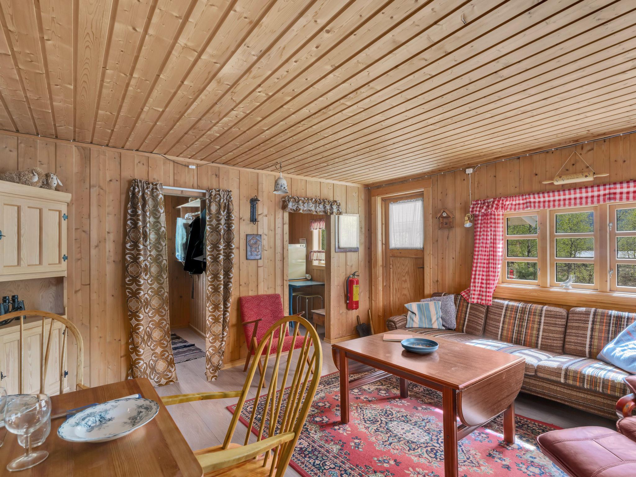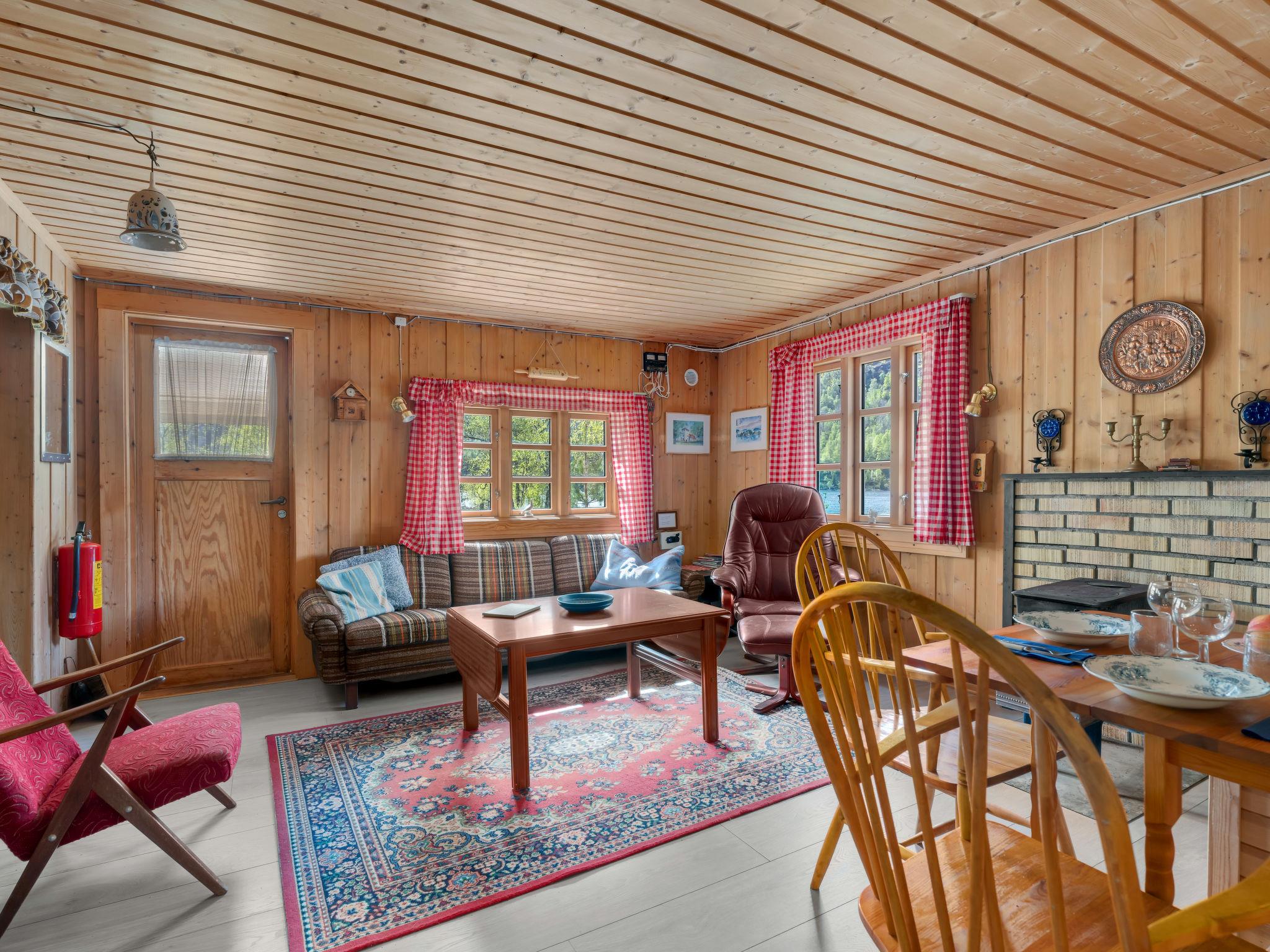 "Oddbu", 4-room house 45 m2. Object suitable for 2 adults + 2 children. Partly, simple furnishings: living/dining room with Scandinavian wood stove and dining table. Exit to the terrace. 1 open room with 1 x 2 bunk beds (90 cm, length 200 cm). 1 room with 2 beds (80 cm, length 200 cm). Open kitchen (Gas stove, 3 gas rings). View of the lake. Please note: non-smoking house. Maximum 1 pet/ dog allowed. Smoke alarm, fire extinguisher. Note: gas fridge without freezer. No running water. Drinking water from the lake, from the store or from the well with hand pump, next to the house. Simple dry toilet about 14 m. Low voltage electricity for lighting, no outlets. Possible to charge one mobile phone. 924531169