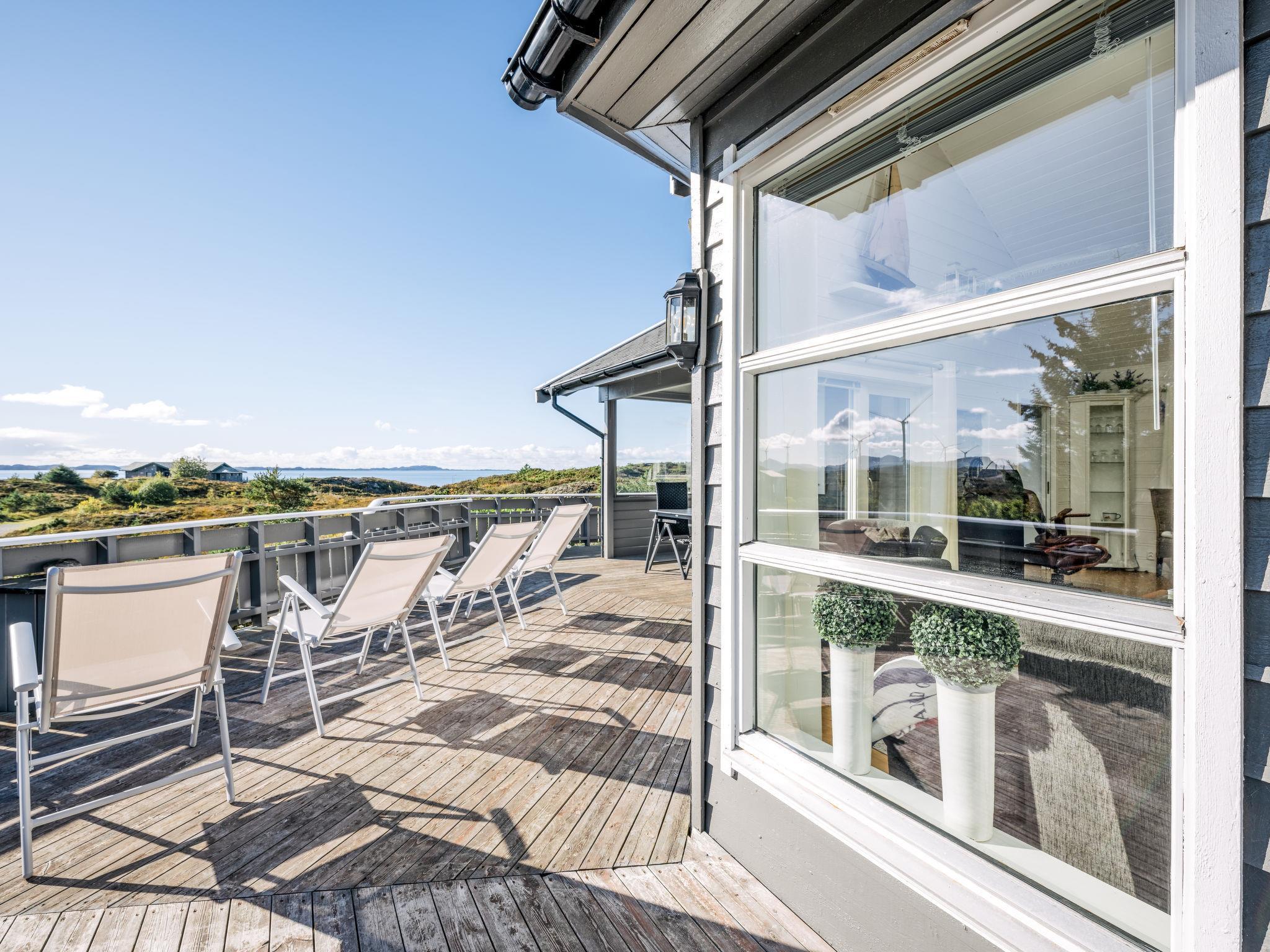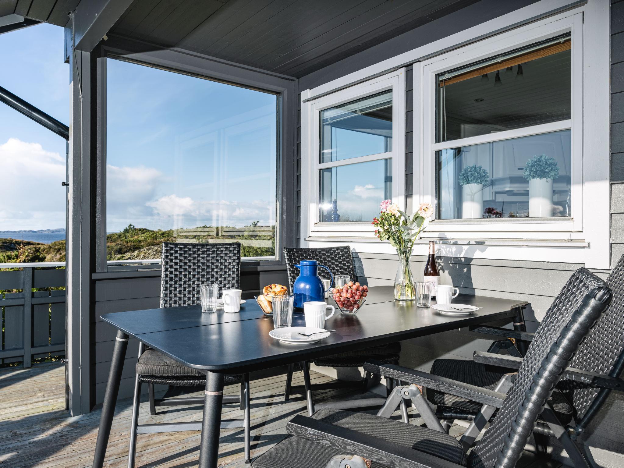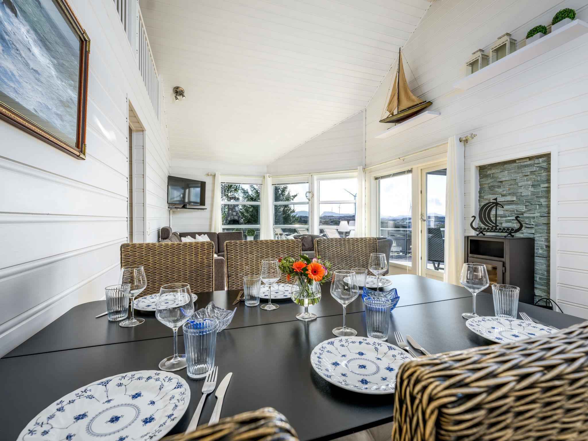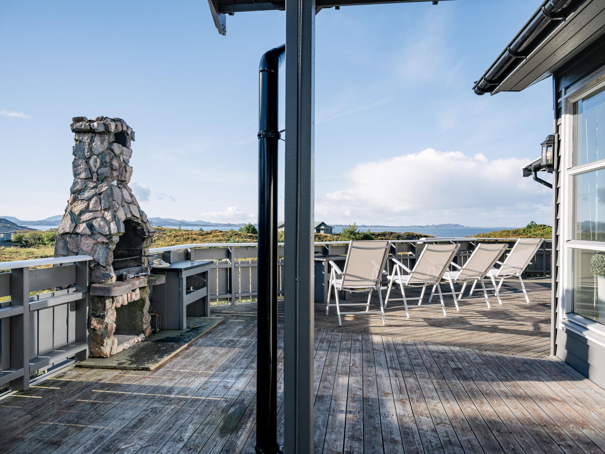 "Sjøbuvågen", 5-room house 110 m2 on 2 levels. Bright, tasteful and cosy furnishings: living/dining room with Scandinavian wood stove, dining table, satellite TV and international TV channels. Exit to the terrace. 2 rooms, each room with 1 french bed (150 cm, length 200 cm). 1 room with 1 bed (90 cm, length 200 cm). Kitchen (oven, dishwasher, 4 ceramic glass hob hotplates, toaster, kettle, microwave, freezer, electric coffee machine). Shower/WC. Upper floor: (steep stair) open gallery with sloping ceilings with 2 sleeping facilities (90 cm, length 200 cm). Electric heating. Wooden floors. Terrace 110 m2 partly roofed terrace 20 m2, roofed. Terrace furniture, barbecue. View of the sea. Facilities: washing machine. Please note: non-smoking house. Private mooring. Smoke alarm, fire extinguisher. Freezer approx. 300 l. Instead of an enclosed bedroom, some sleeping areas are located in an open-plan area (gallery, alcove, etc.). 924531169