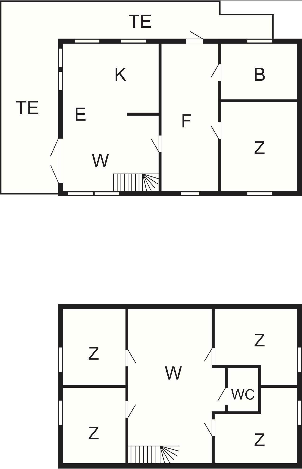 5 Schlafz.: (1DB)+(2B)+(1DB)+(1DB)+(2B), Kinderbett