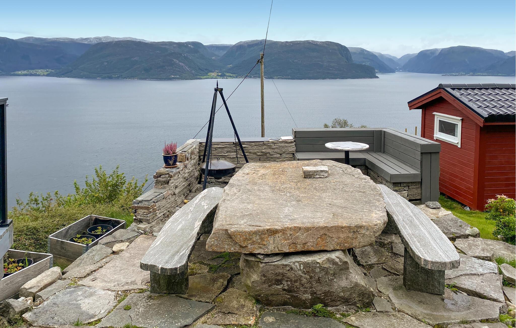 Erleben Sie eine traumhafte Auszeit in diesem charmanten Ferienhaus direkt am Fjord und mit Panoramasicht.