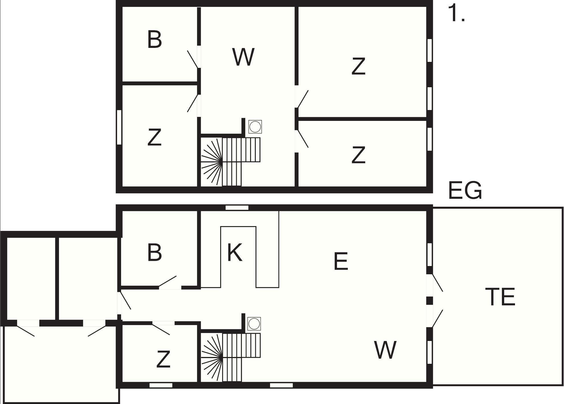 4 Schlafz.: (1DB)+(1DB)+(1DB+1K)+(2B)