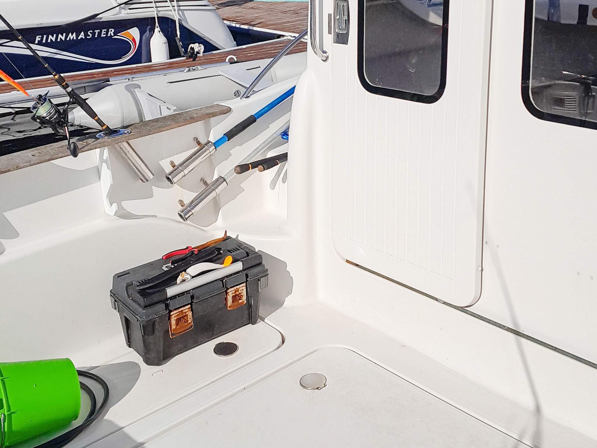 *ein 21 Fuß Boot Typ Quicksilver 640 mit Kabine, selbstlenzendem Deck, 100 PS Mercury Außenborder, Echolot, Kartenplotter, GPS und 10 Rutenhaltern. Eberspächer Dieselheizung in der Kabine.