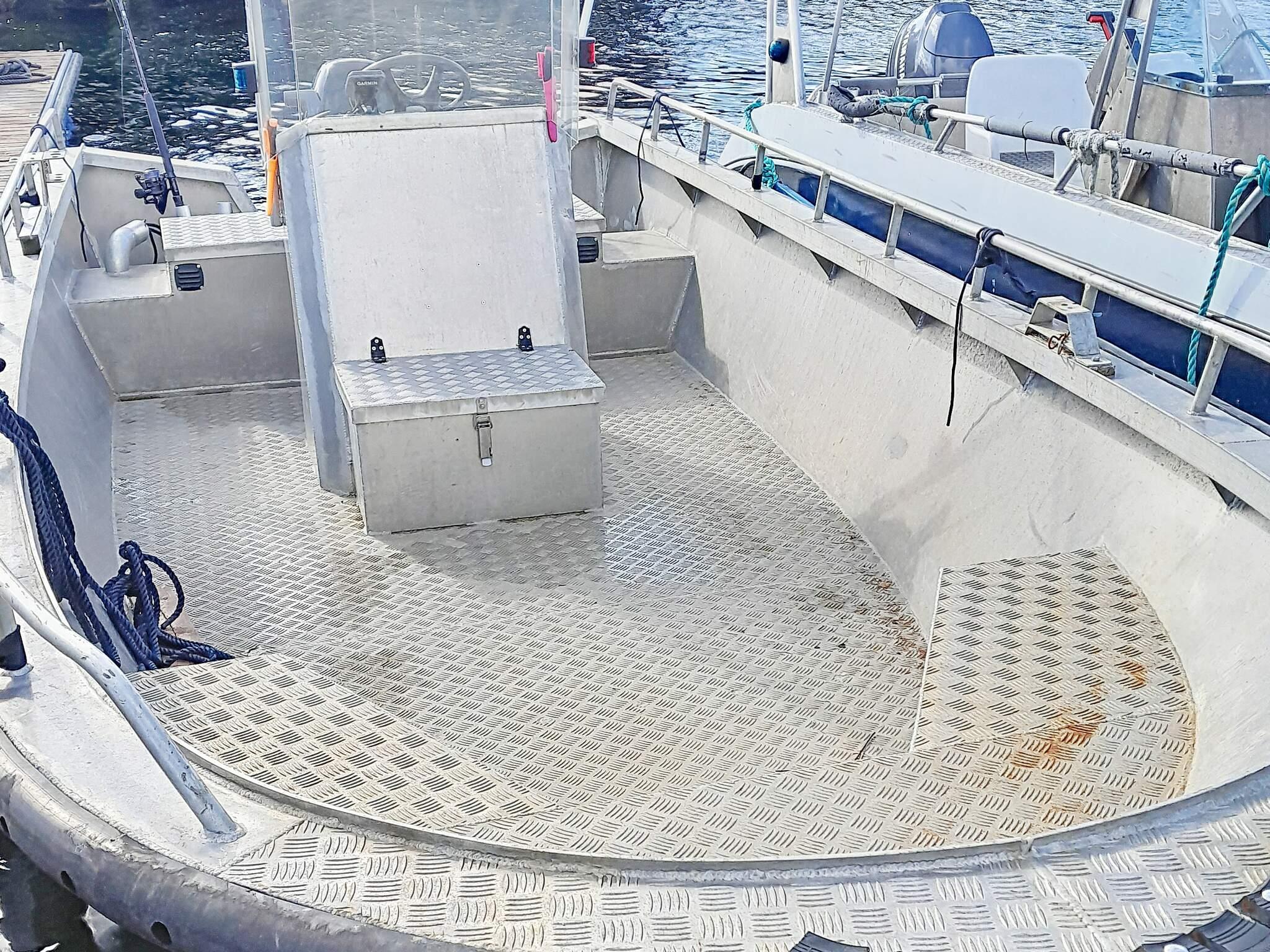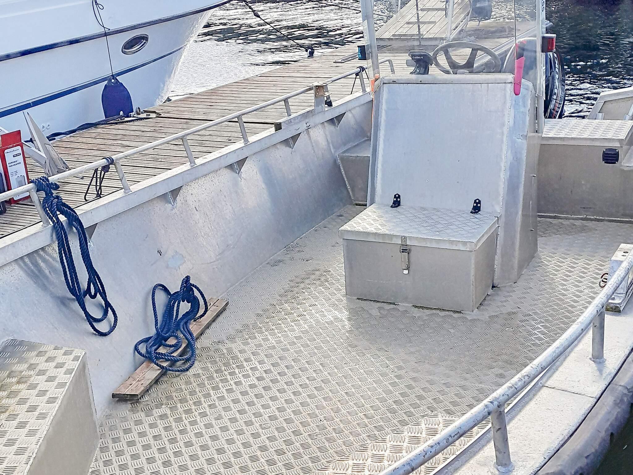 *ein 21 Fuß Boot Typ Quicksilver 640 mit Kabine, selbstlenzendem Deck, 100 PS Mercury Außenborder, Echolot, Kartenplotter, GPS und 10 Rutenhaltern. Eberspächer Dieselheizung in der Kabine.