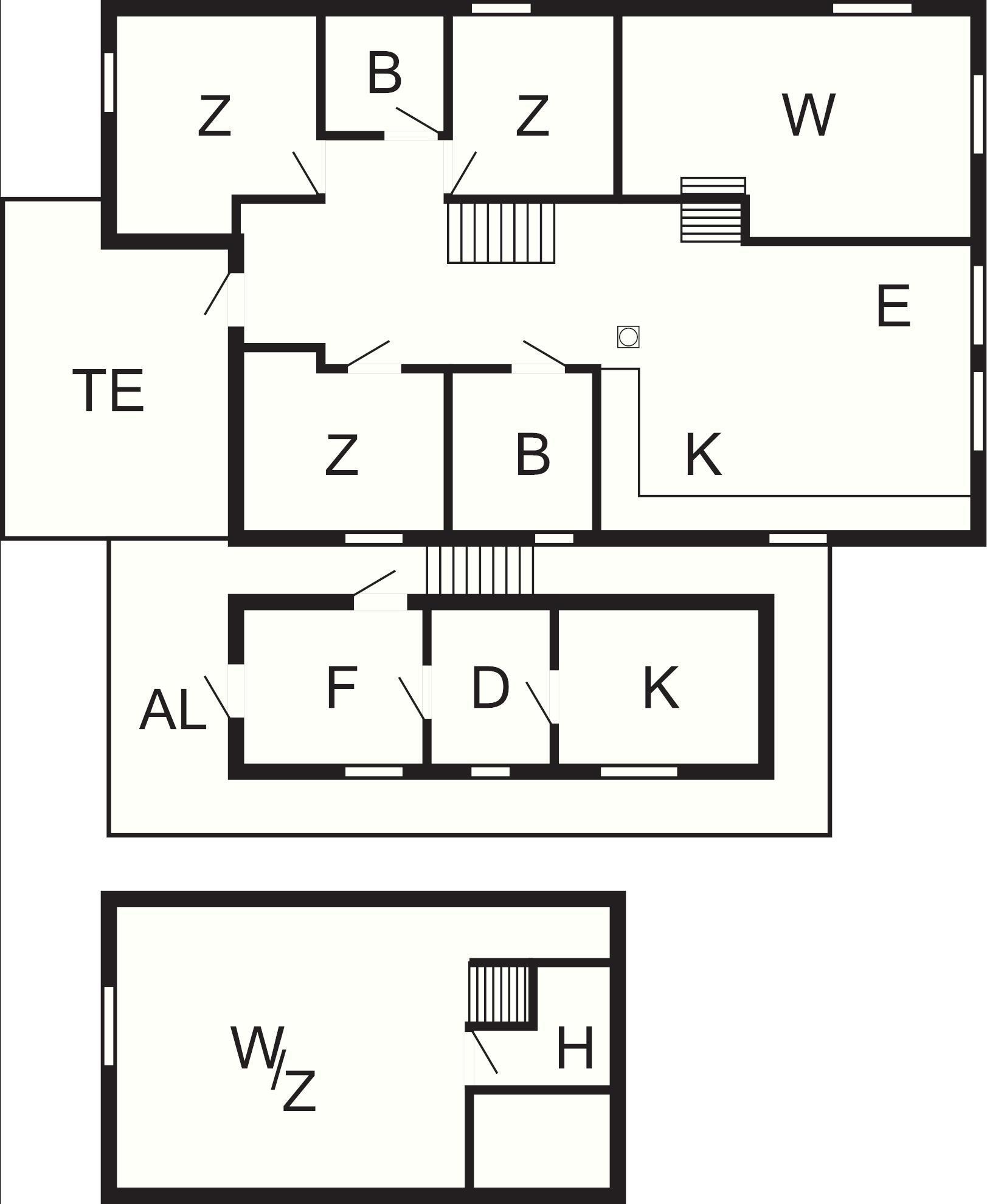 Off. Küche: Hochstuhl, E-Herd, Kühlschr., Gefriertruhe 200-249 l., Mikrow., Abzugsh., Spülm., Waschm., Kaffeem.