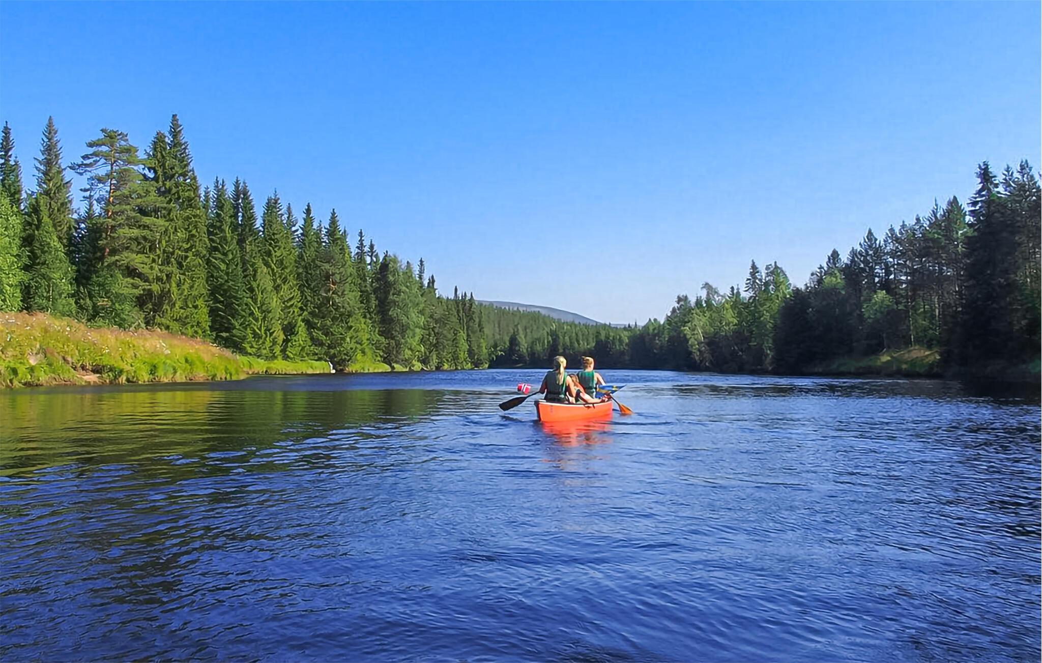 Nutzen Sie die fantastische Lage direkt in der Natur. Der angrenzende Wald und die grünen Wiesen bieten Ihnen zahlreiche Möglichkeiten für Spaziergänge und Outdoor-Aktivitäten. Ein Spielplatz sorgt dafür, dass auch die Kleinen auf ihre Kosten kommen. Und der nahe gelegene Fluss Ljøra bietet optimale Bedingungen für Kanu- und Angelausflüge.