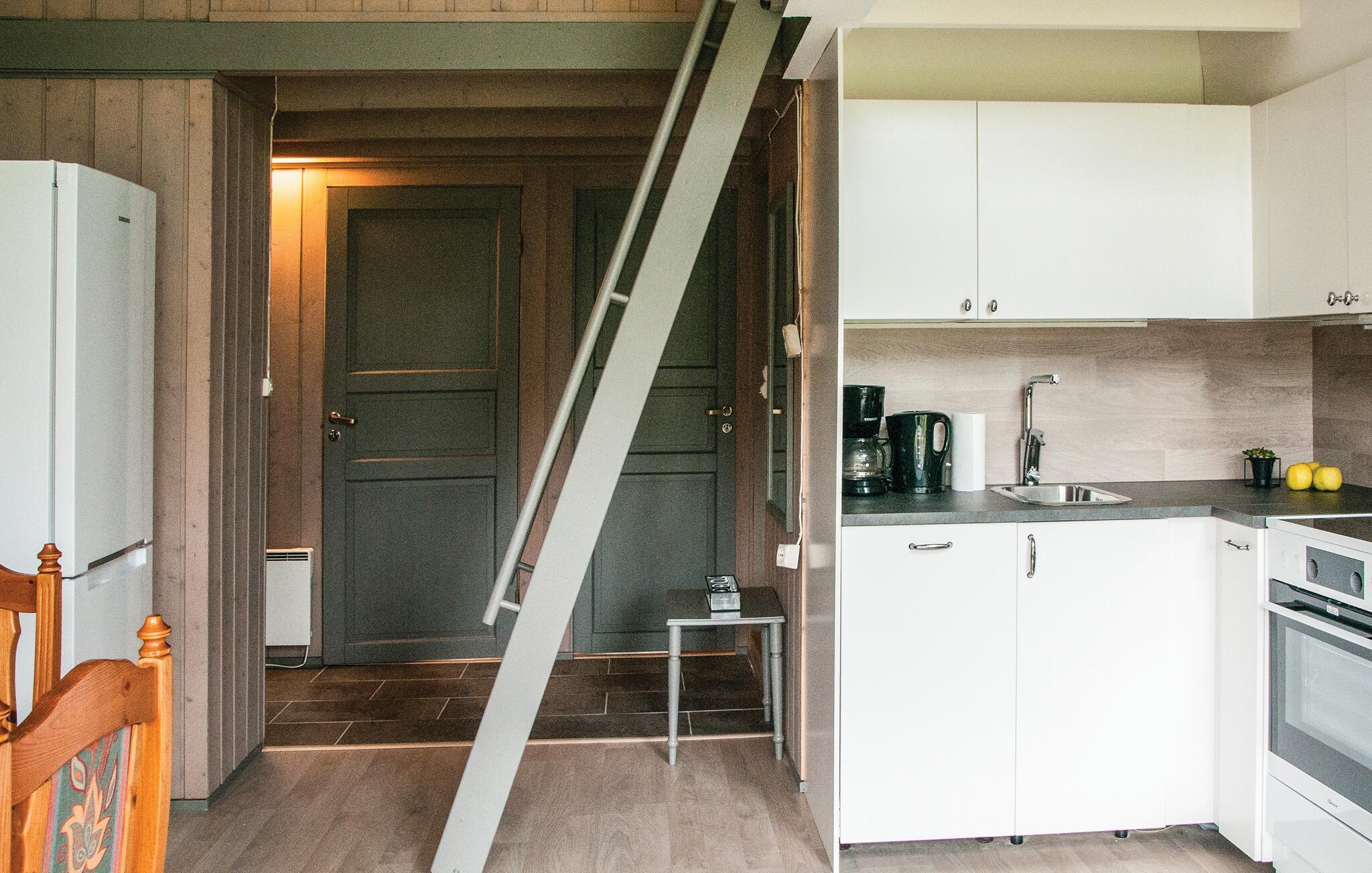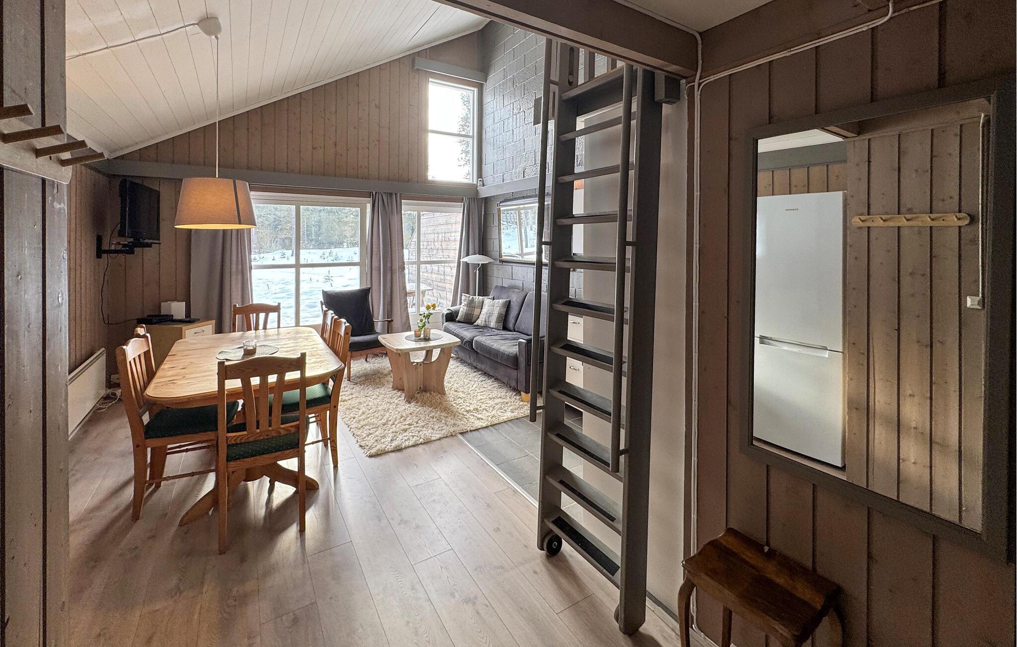 Erleben Sie die wunderschöne Natur von Ljørdalen und entspannen Sie in dieser gemütlichen Ferienwohnung, die Ihnen Komfort und eine erstklassige Lage bietet. Die großen Fenster lassen viel Licht herein und bieten einen fantastischen Blick auf die grüne Umgebung. Legen Sie auf dem bequemen Sofa die Beine hoch und genießen Sie den Blick ins Freie. Die offene Küche ist praktisch eingerichtet und lädt zum gemeinsamen Kochen ein. Am Esstisch finden alle Platz, um gemütliche Abende miteinander zu verbringen.