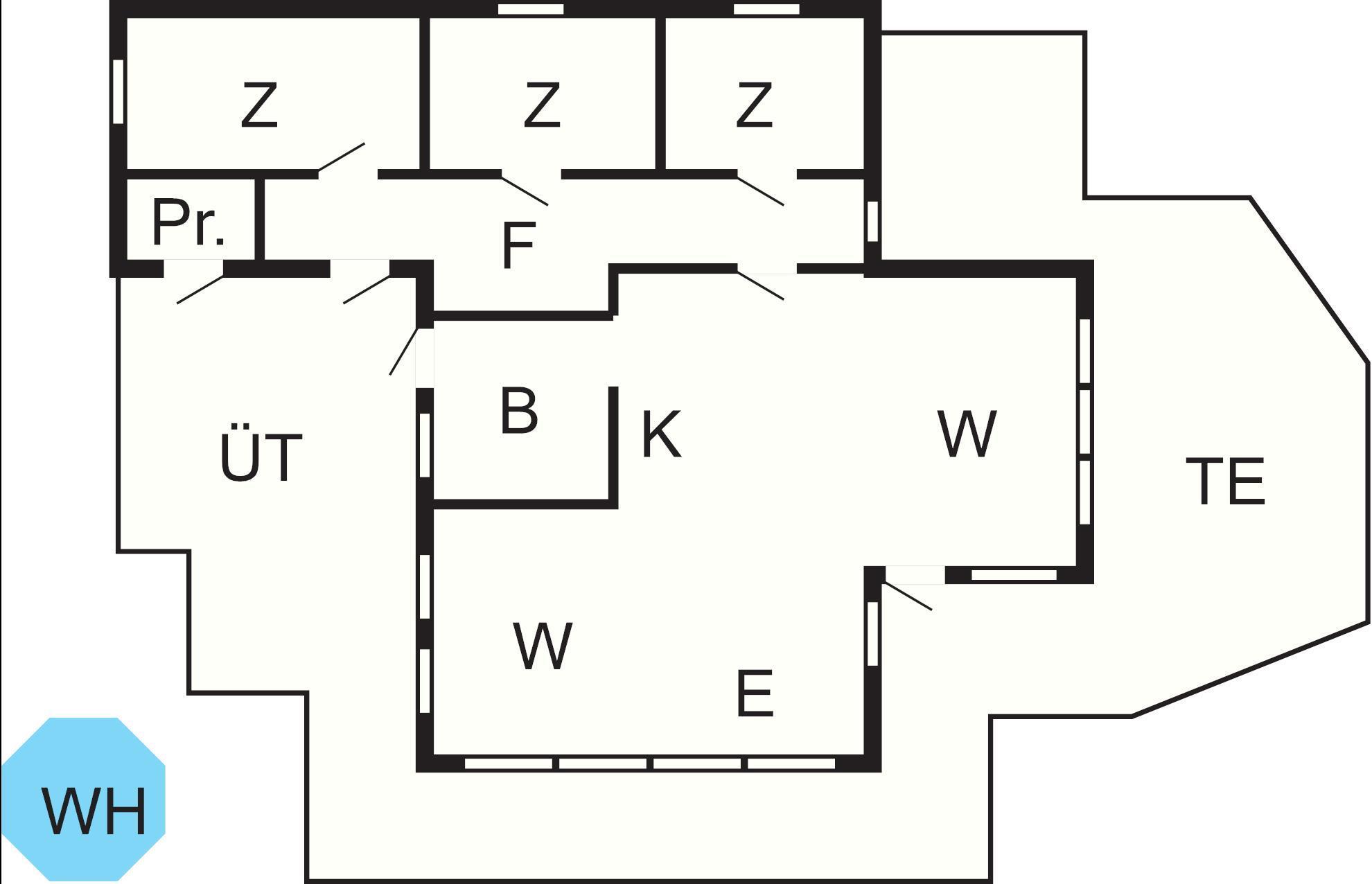 Off. Küche: E-Herd, Kühlschr., Gefriertruhe 100-139 l., Mikrow., Abzugsh., Spülm., Waschm., Kaffeem.