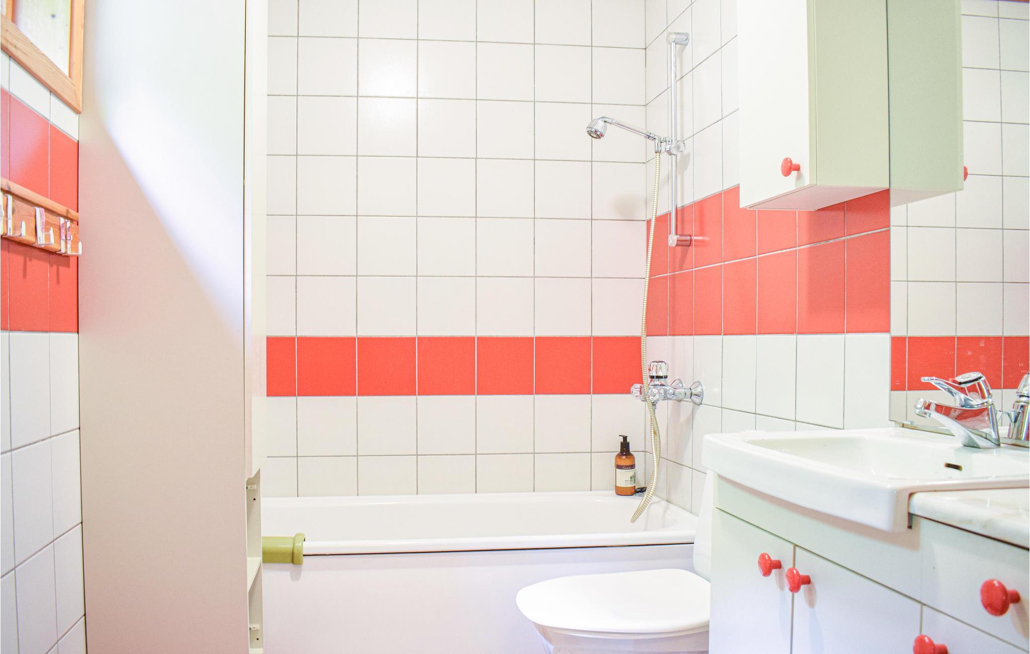 Badezimmer (nr. 2) - WC. Warmes und kaltes Wasser. Handdusche und Badewanne