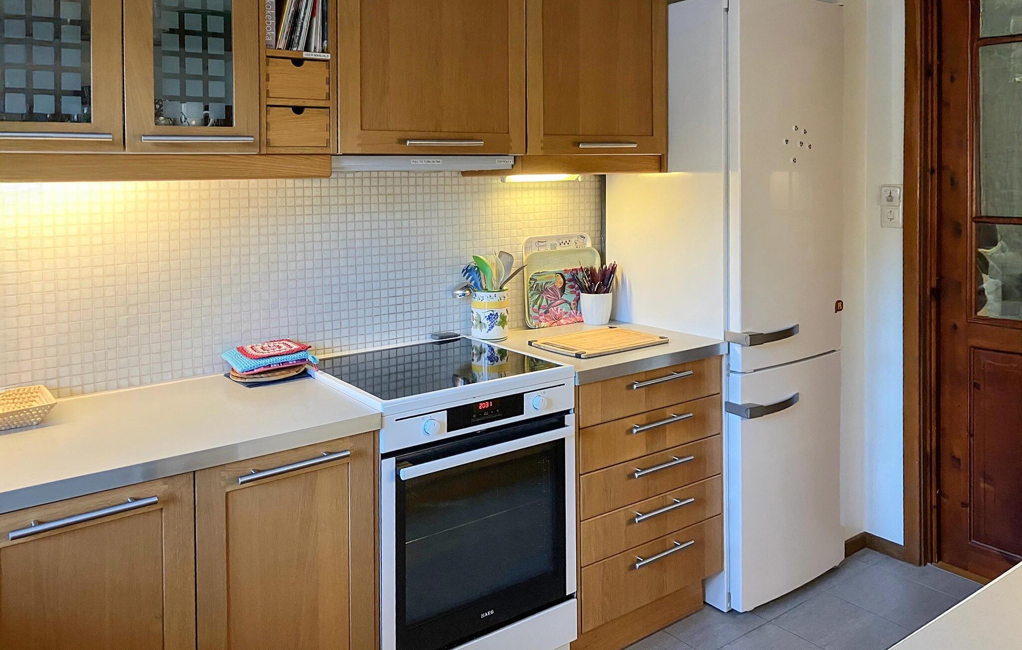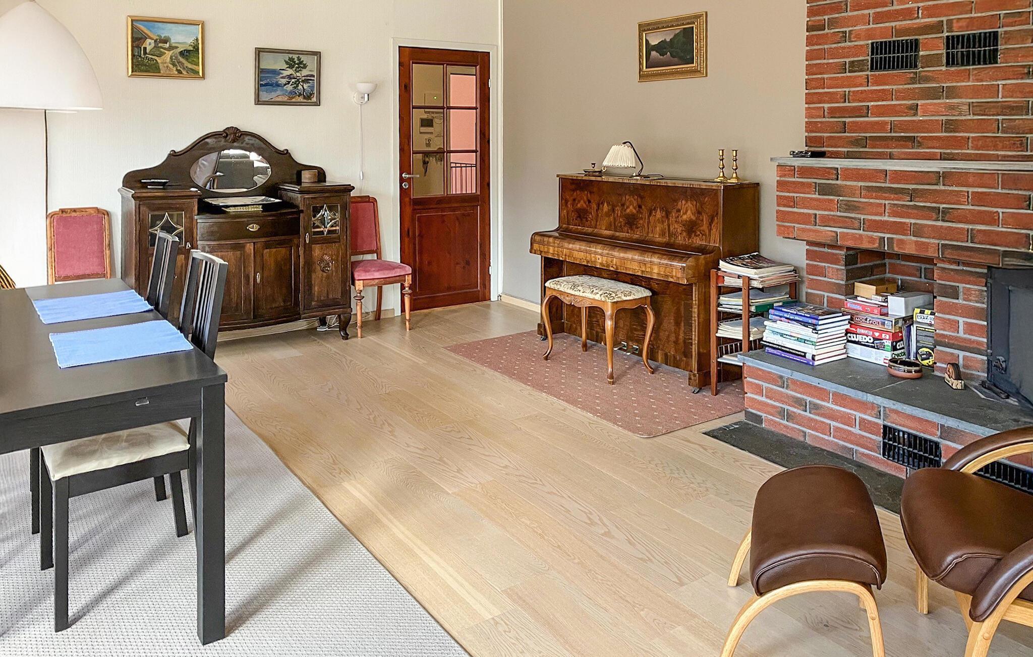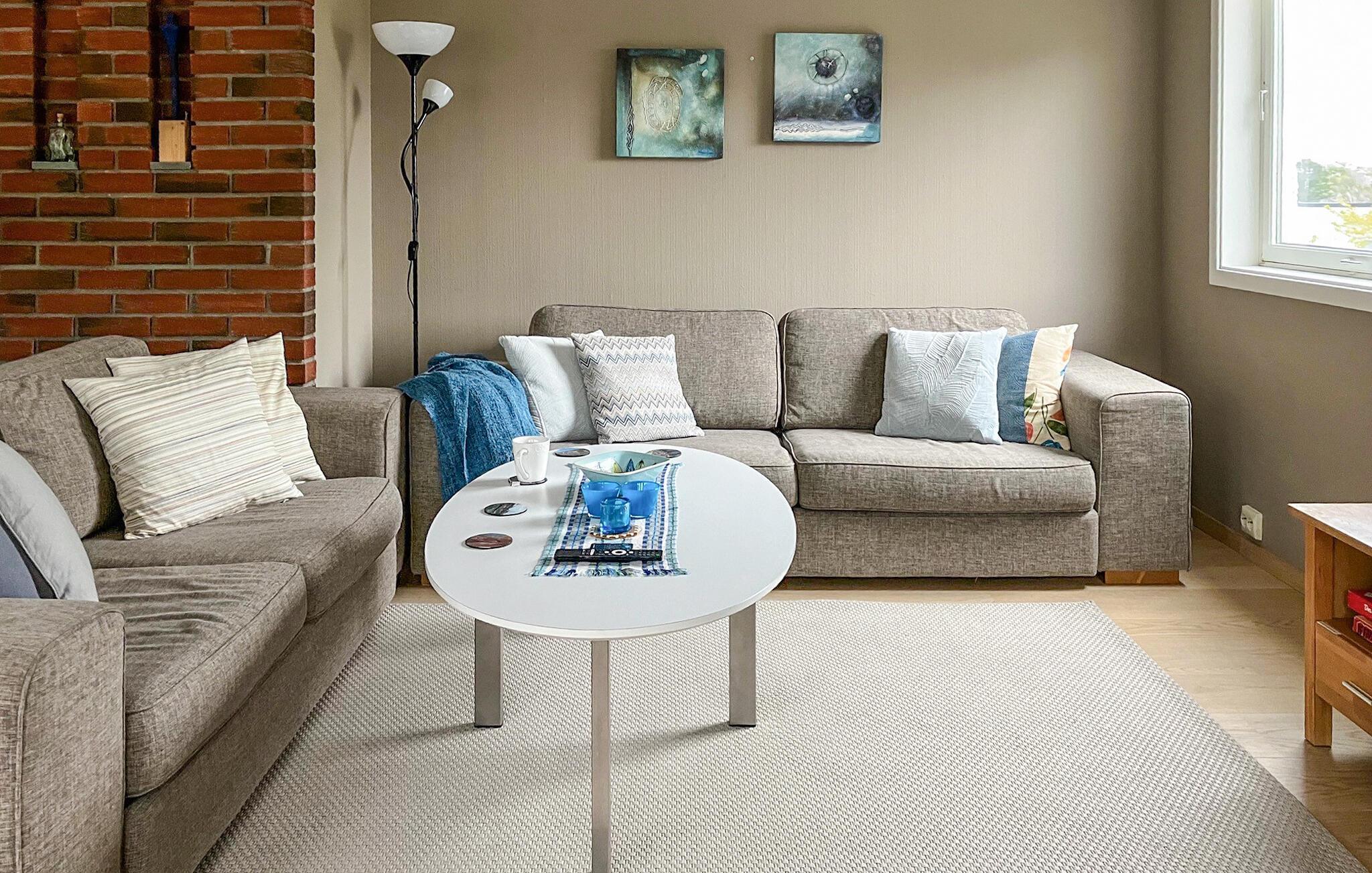 Richten Sie sich im großzügigen Wohnbereich ein. Lassen Sie sich auf den komfortablen Sofas nieder und genießen Sie den freien Blick durch die großen Fenster. Hier sind Entschleunigung und Relaxen angesagt. Musizieren Sie gemeinsam nach dem Abendessen, dass Sie in der praktischen Küche zubereiten können. Die gemütliche Atmosphäre im Wohnbereich trägt zu einer gelassenen Urlaubsstimmung bei.