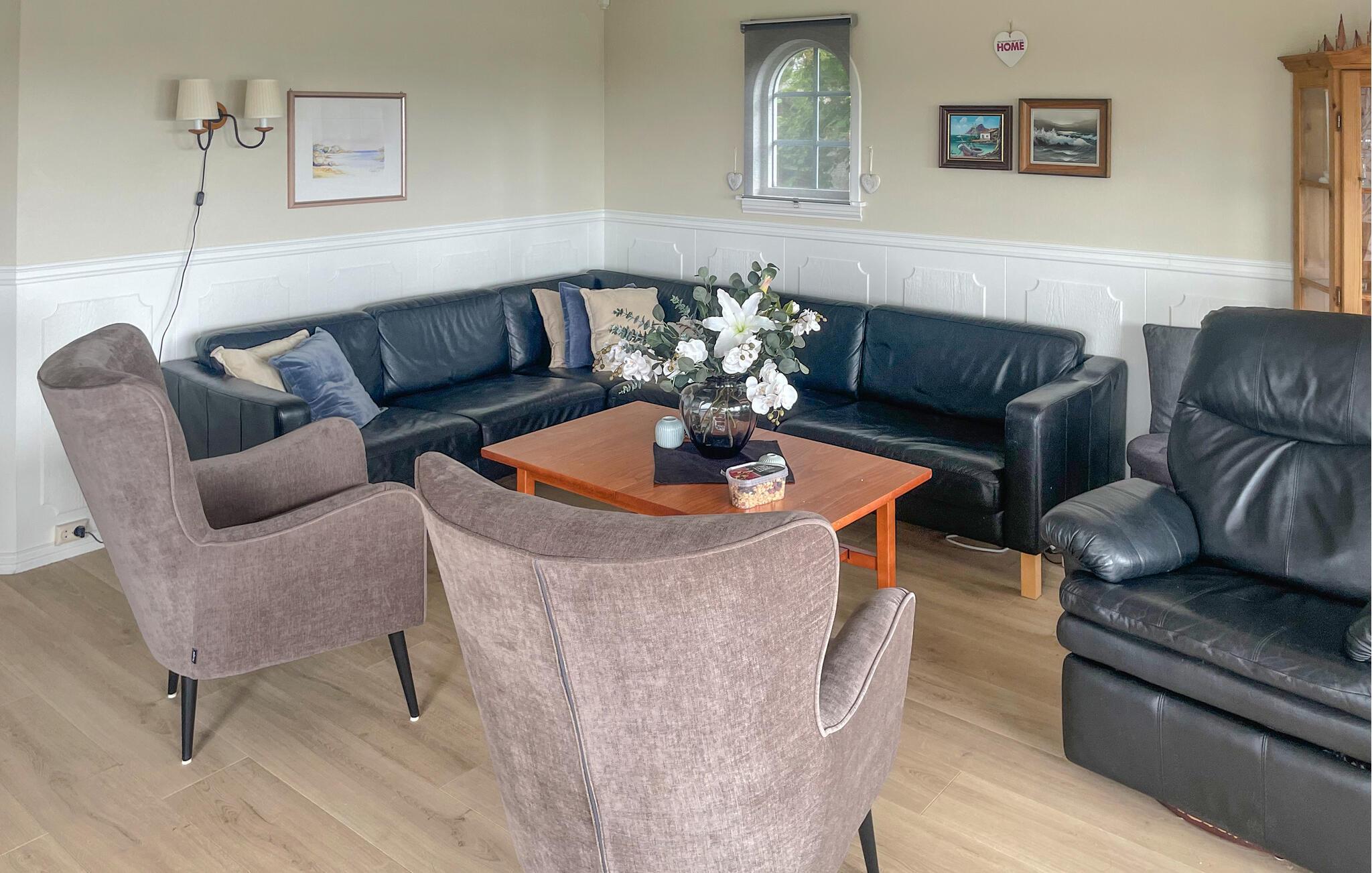 Nahe der bezaubernden Stadt Mandal erwartet Sie dieses charmante Ferienhaus als Unterkunft für Ihren nächsten Urlaub. Schon beim Betreten des Hauses werden Sie von der gemütlichen Atmosphäre, den großen Fensterfronten und dem atemberaubenden Panoramablick auf den Fjord begeistert sein. Starten Sie Ihren Tag mit einer Tasse frisch gebrühten Kaffee und einem ausgiebigen Frühstück, das Sie gemeinsam in der offenen Wohnküche zubereiten. Am Esstisch mit Meerblick können Sie nicht nur Ihre Mahlzeiten genießen, sondern auch die Pläne für den kommenden Tag schmieden.