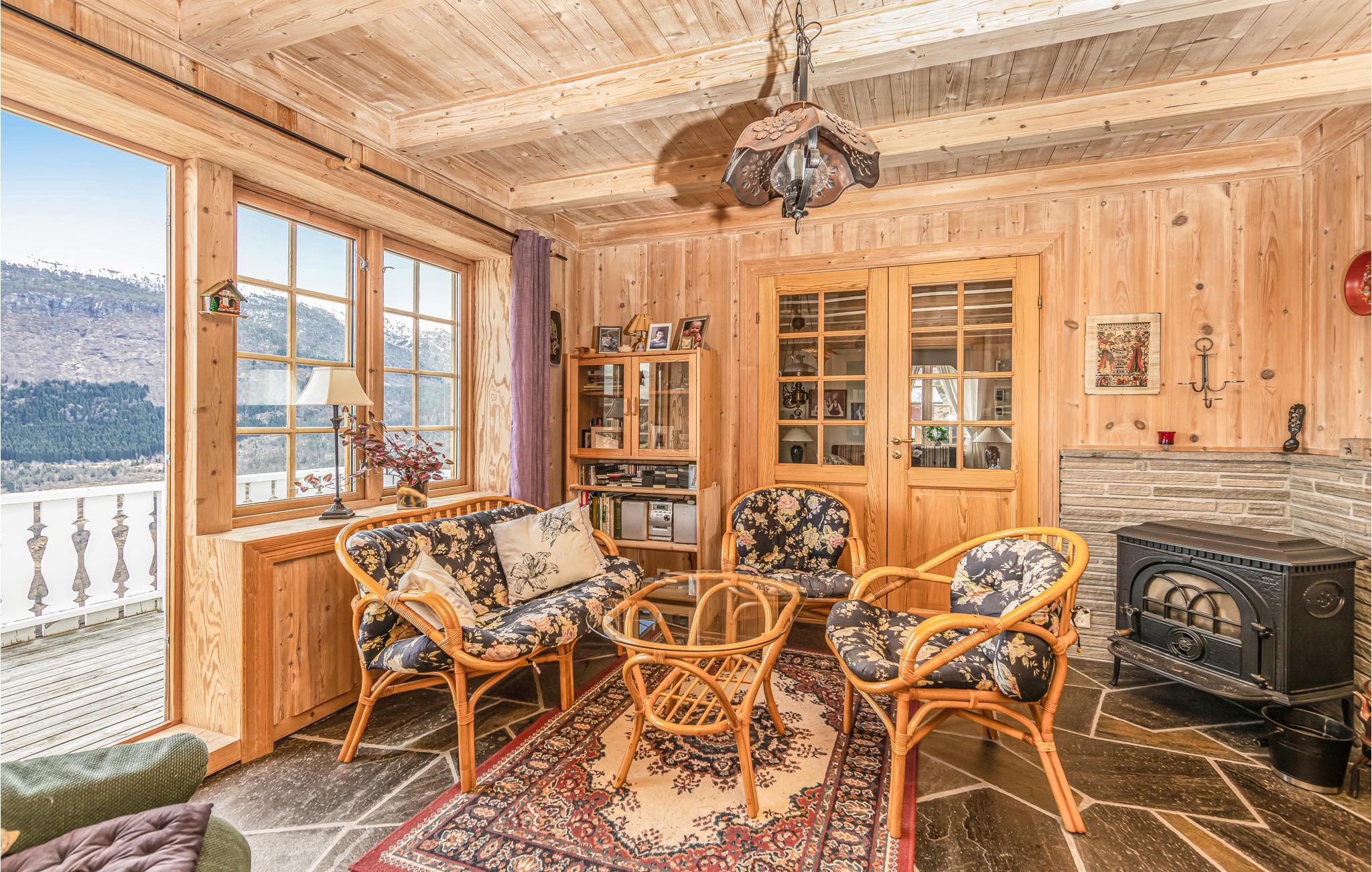 Hier erwartet Sie ein großes und schönes Bauernhaus auf dem Hof ??des Hauseigentümers. Das Haus ist gemütlich eingerichtet und bietet eine spektakuläre Aussicht. Hier können Sie im Wohnzimmer sitzen und den Blick auf die norwegische Natur genießen.