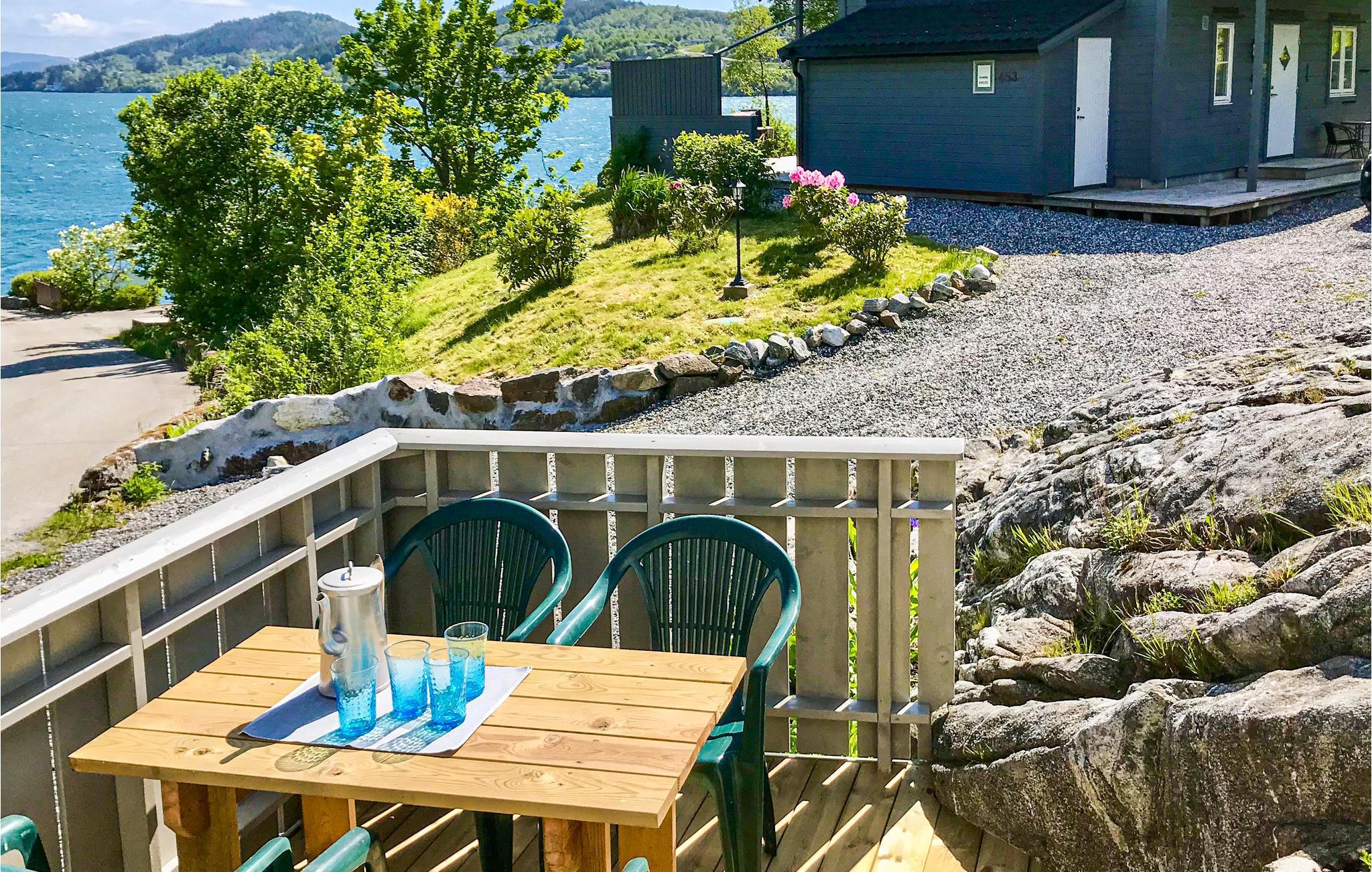 Das Ferienhaus bietet unter anderem eine offene als auch eine überdachte Terrasse, von der aus Sie den Fjordblick zusammen mit Ihrem Frühstück genießen können.