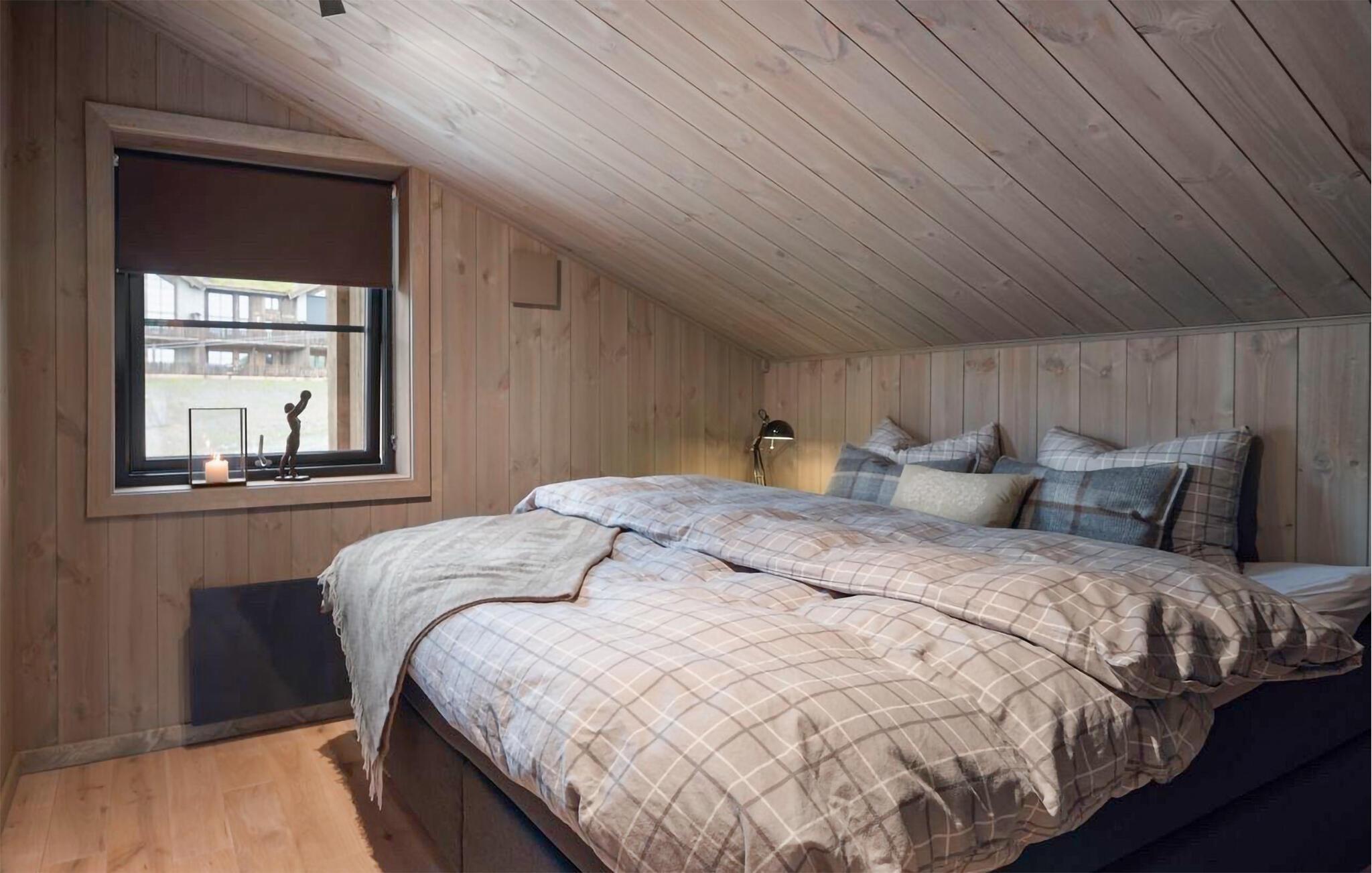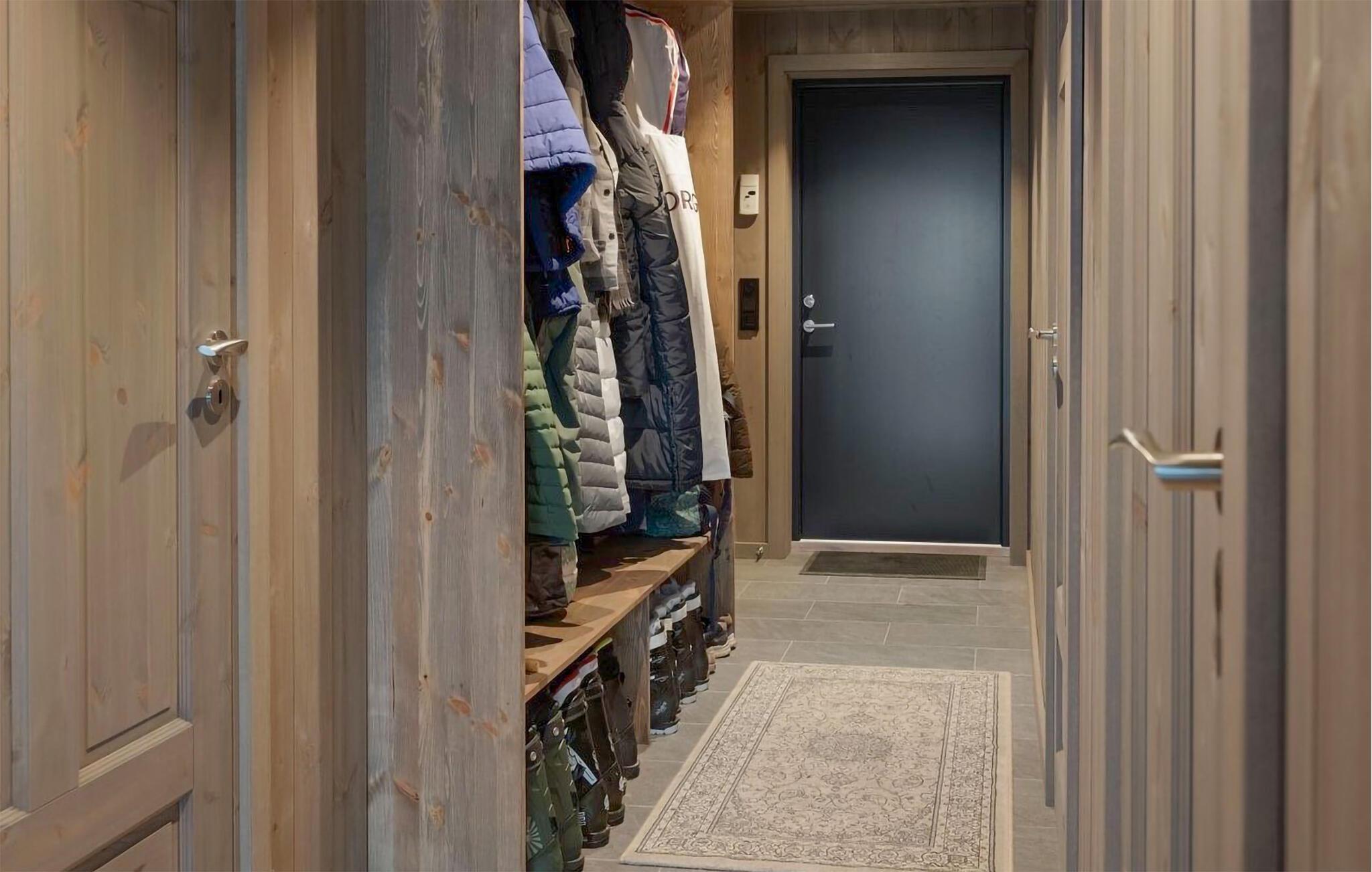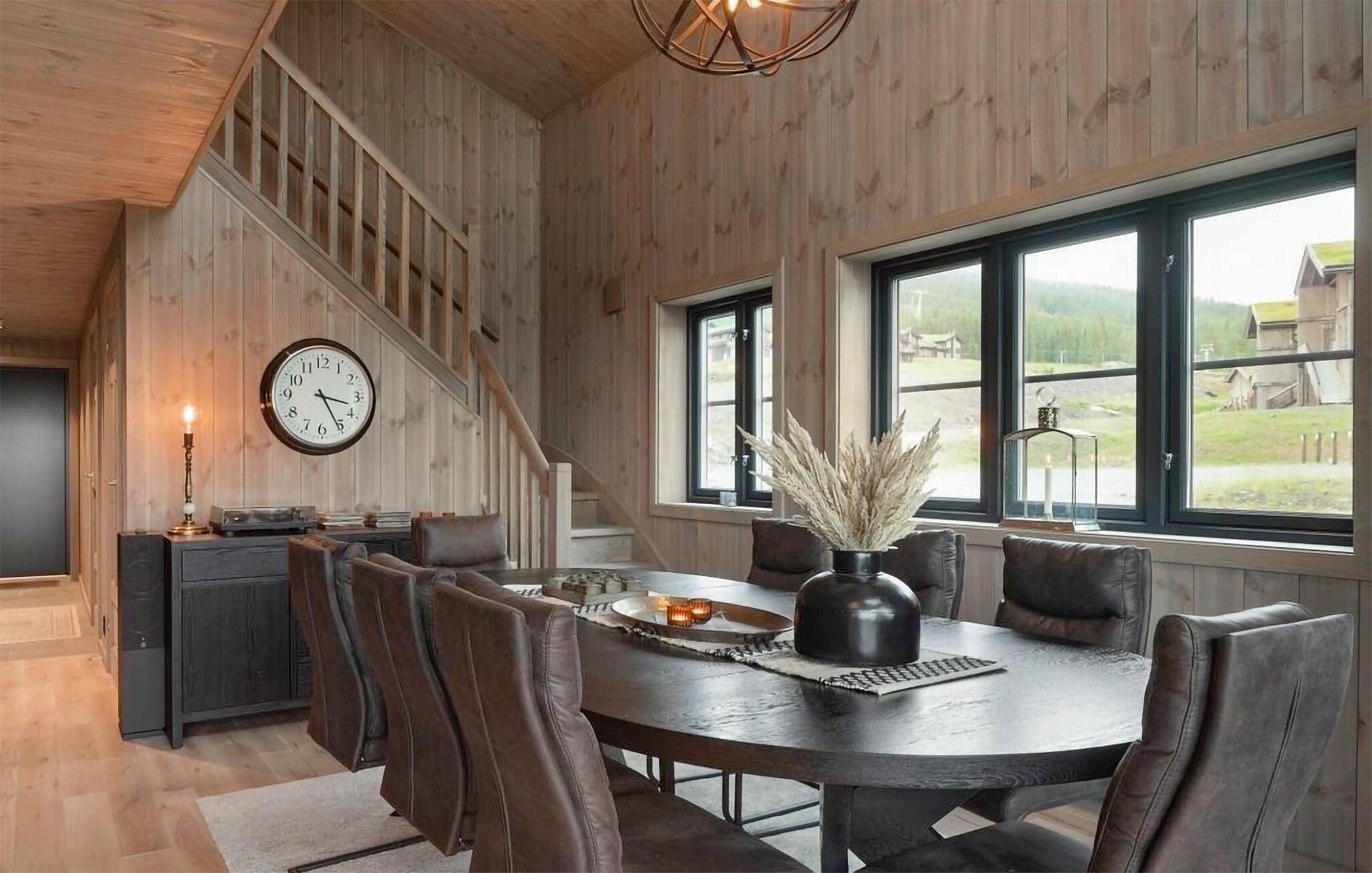 Das geräumige Holzhaus auf Nesfjellet, das Platz für zwei Familien bietet, beeindruckt mit seiner modernen Architektur und der gemütlichen, rustikalen Atmosphäre. Starten Sie den Tag mit einem Kaffee auf der großen Terrasse, während Sie die beeindruckende Aussicht auf die umliegenden Berge genießen. Nehmen Sie sich Zeit, um die gut ausgestattete Küche zu nutzen und bereiten Sie gemeinsam ein ausgiebiges Frühstück vor. Die großen Fenster im Essbereich lassen viel Licht herein und bieten einen sagenhaften Panoramablick. Nach dem Essen können Sie im komfortablen Wohnzimmer entspannen, wo die gemütliche Sitzecke für eine wohlige Atmosphäre sorgt.