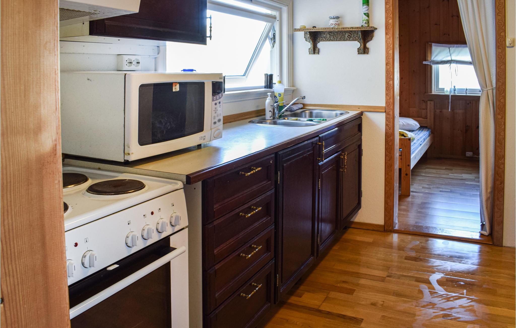 Genießen Sie einen erholsamen Urlaub in diesem einfach ausgestatteten, aber charmanten Ferienhaus mit traumhafter Aussicht. Entspannen Sie sich auf der Terrasse oder nutzen Sie den Pier für einen ungestörten Aufenthalt am Wasser. Der Innenbereich des Hauses ist funktional und gemütlich eingerichtet. Machen Sie es sich in der Sitzecke am großen Fenster bequem und genießen Sie den sagenhaften Blick auf den Fjord. Der rustikale Esstisch bietet Platz für gemeinsame Mahlzeiten, und in der Küche können Sie Ihre eigenen Gerichte zubereiten.