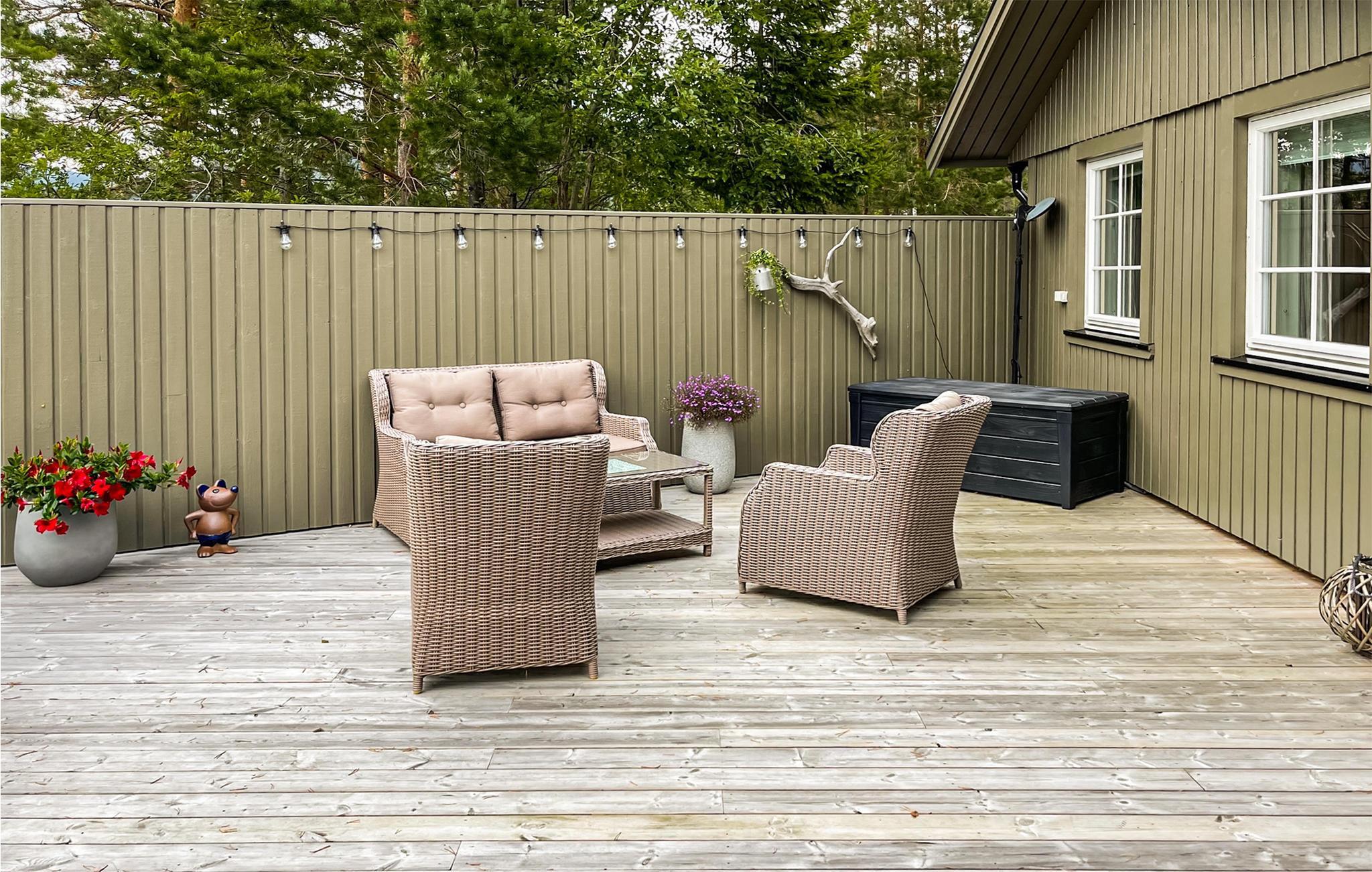 Verbringen Sie auf dem Seegrundstück unvergessliche Stunden im Freien. Im Sommer können Sie hier draußen mit Blick auf den See zusammen essen. Wenn Sie sich erfrischen möchten, springen Sie einfach in den See.