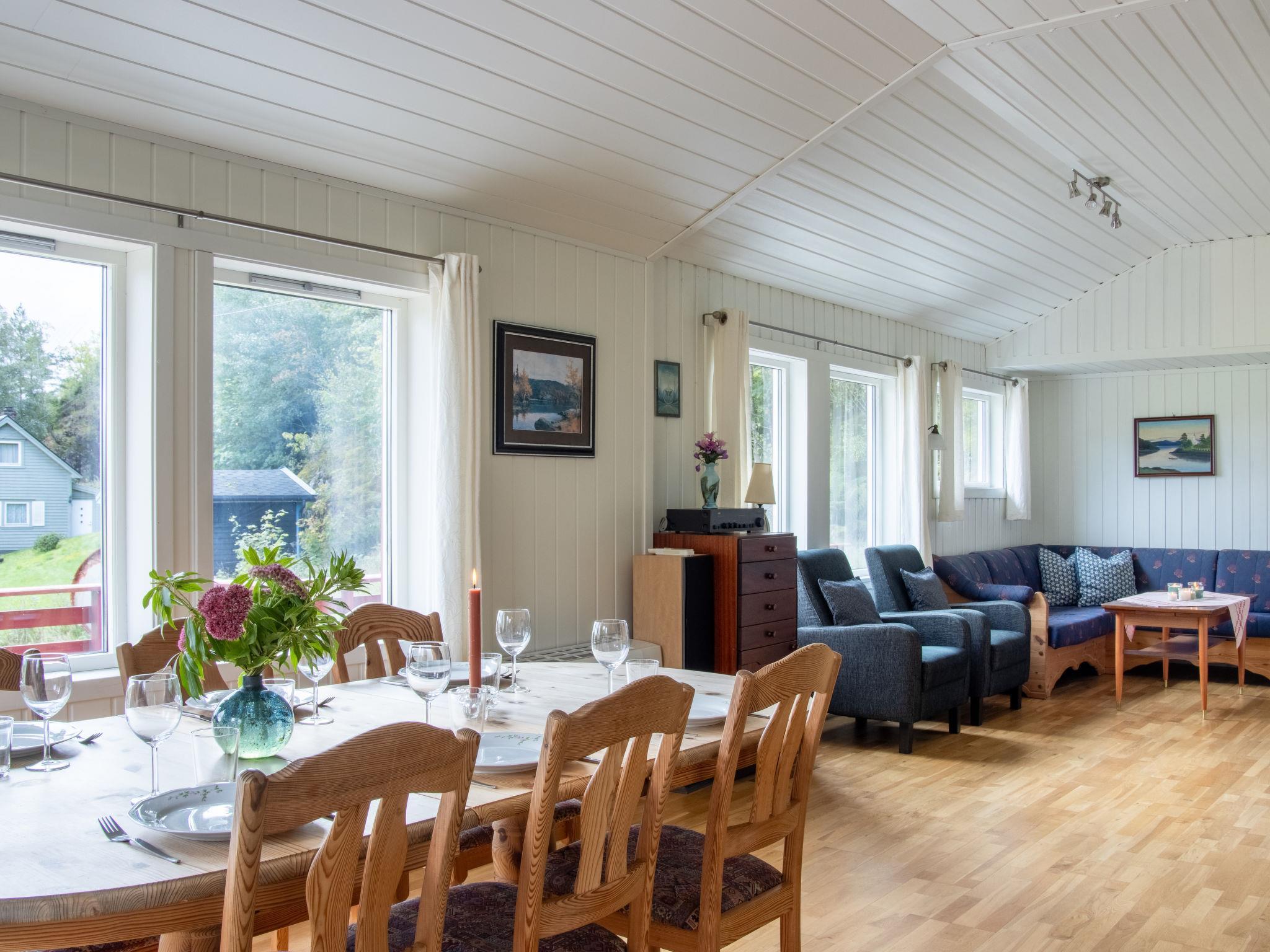 "Fjordglytt", 5-room house 65 m2. Object suitable for 8 adults. Cosy furnishings: living/dining room with dining table and TV. Exit to the balcony. 1 room with 2 beds. 1 room with 1 x 3 bunk beds. 1 open room with 1 french bed (150 cm, length 200 cm). 1 open room with 1 x 2 bunk beds (75 cm, length 200 cm). Open kitchen (oven, dishwasher, 4 induction hot plates, toaster, kettle, microwave, freezer, electric coffee machine). Shower/WC. Forced-air heating, underfloor heating. Large balcony. Balcony furniture, barbecue (portable), box-room. Beautiful view of the sea. Facilities: washing machine, baby cot. Please note: non-smoking house. Smoke alarm, fire extinguisher. Freezer approx. 400 l. Bed layout is flexible. There are more sleeping options available than the maximum number of people allowed which may, however, not be exceeded. 924531169