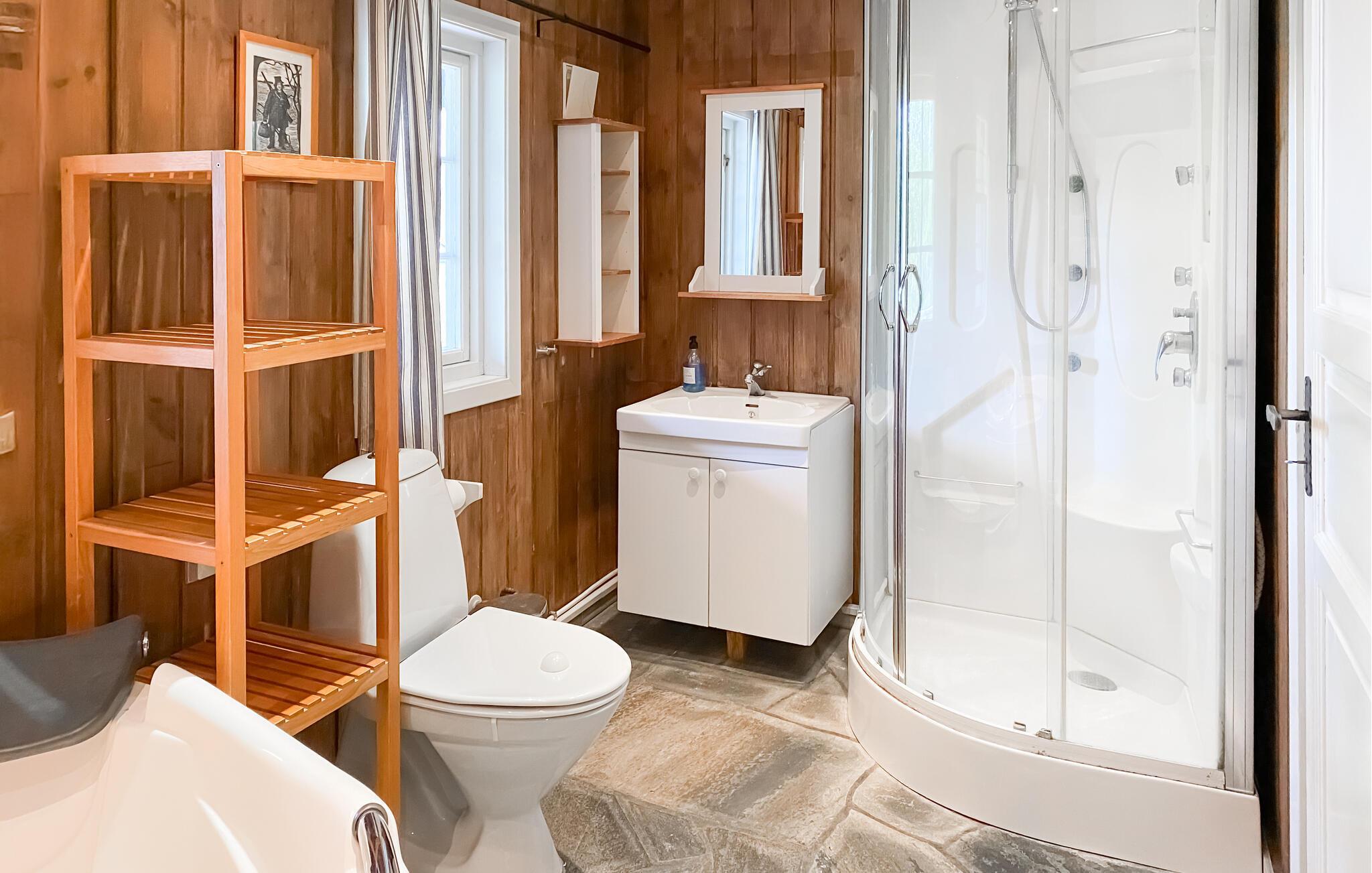 Badezimmer (nr. 1) - WC. Warmes und kaltes Wasser. Dusche und Badewanne