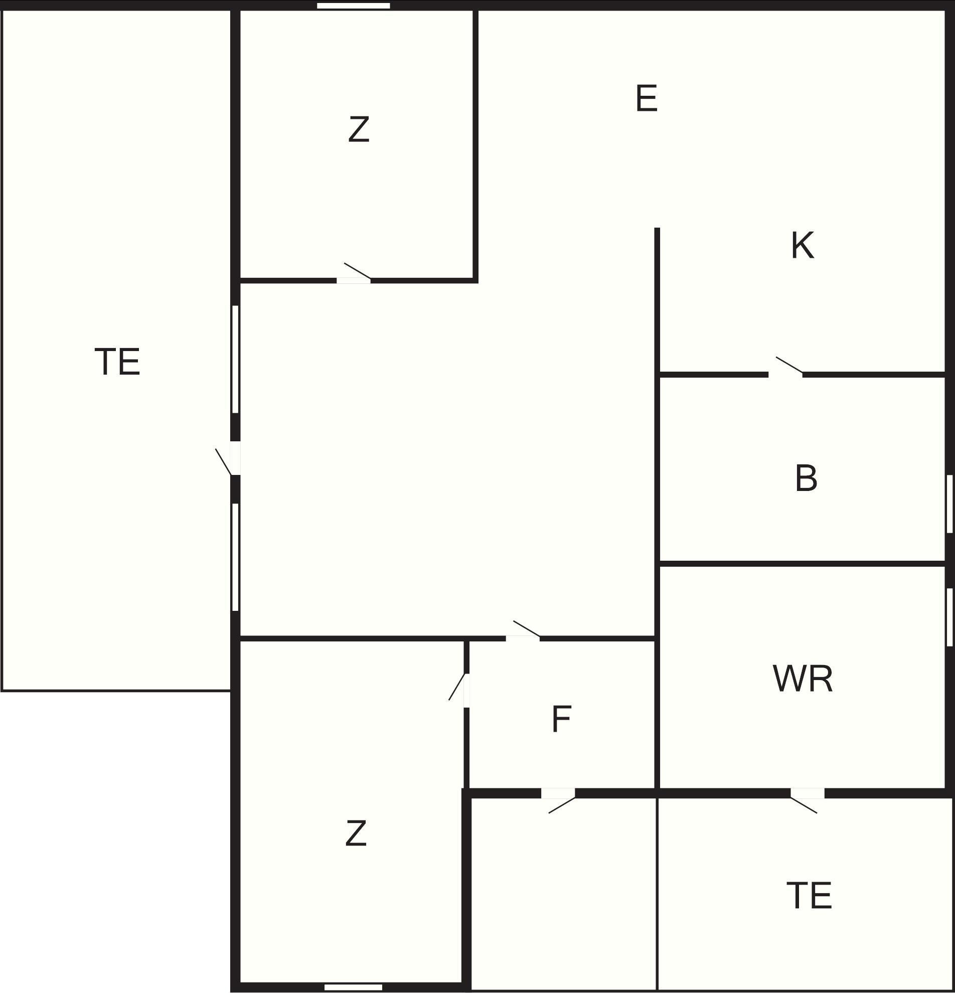 In der Hütte liegen alle Räume auf einer Ebene mit Veranda, Badezimmer, Waschküche, Küche, Wohnzimmer und zwei Schlafzimmern. Einfacher Zugang entweder über die Haupttür in den Flur oder direkt in den Wasch-/Trockenraum mit Waschmaschine, Trockner und großem Waschbecken. Großes Badezimmer mit Duschkabine. Fußbodenheizung in Waschküche/Badezimmer. Helles, gemütliches Wohnzimmer mit TV/Holzofen. Große Küche mit Esstisch und viel Platz für alle. Schlafzimmer 1 hat zwei Einzelbetten, Schlafzimmer 2 hat 2 Etagenbetten mit 4 Kojen, ein Bett ist nur 60 cm breit und daher am besten für ein Kleinkind geeignet. In der Hütte befindet sich auch ein Kinderbett. Bettwäsche muss mitgebracht werden.