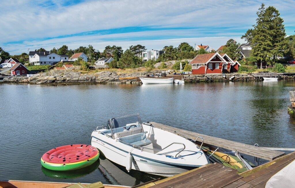 Genießen Sie dieses geschmackvoll eingerichtete Häuschen in Søgne, das Ihnen den perfekten Rückzugsort am Wasser bietet.