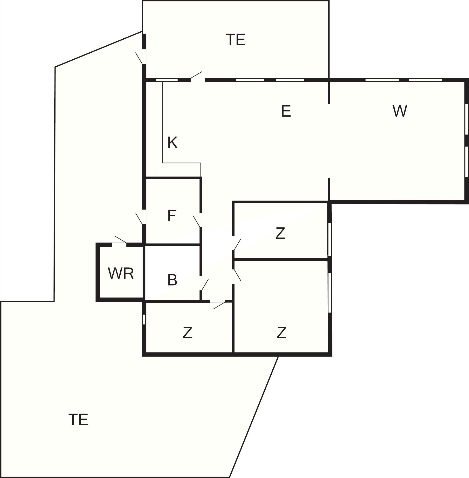Das 70 m2 große Ferienhaus liegt auf einer Anhöhe, etwa 90 m von der Küste entfernt. Innen Eingangsdiele mit Garderobe, Badezimmer/Waschküche und Abstellraum. Drei Schlafzimmer; eines mit Doppelbett, zwei mit je 1 Einzelbett. Geräumiges Wohnzimmer und offene Küche mit Holzofen. Treppe zum Dachboden/Hems mit 2 weiteren Einzelbetten.