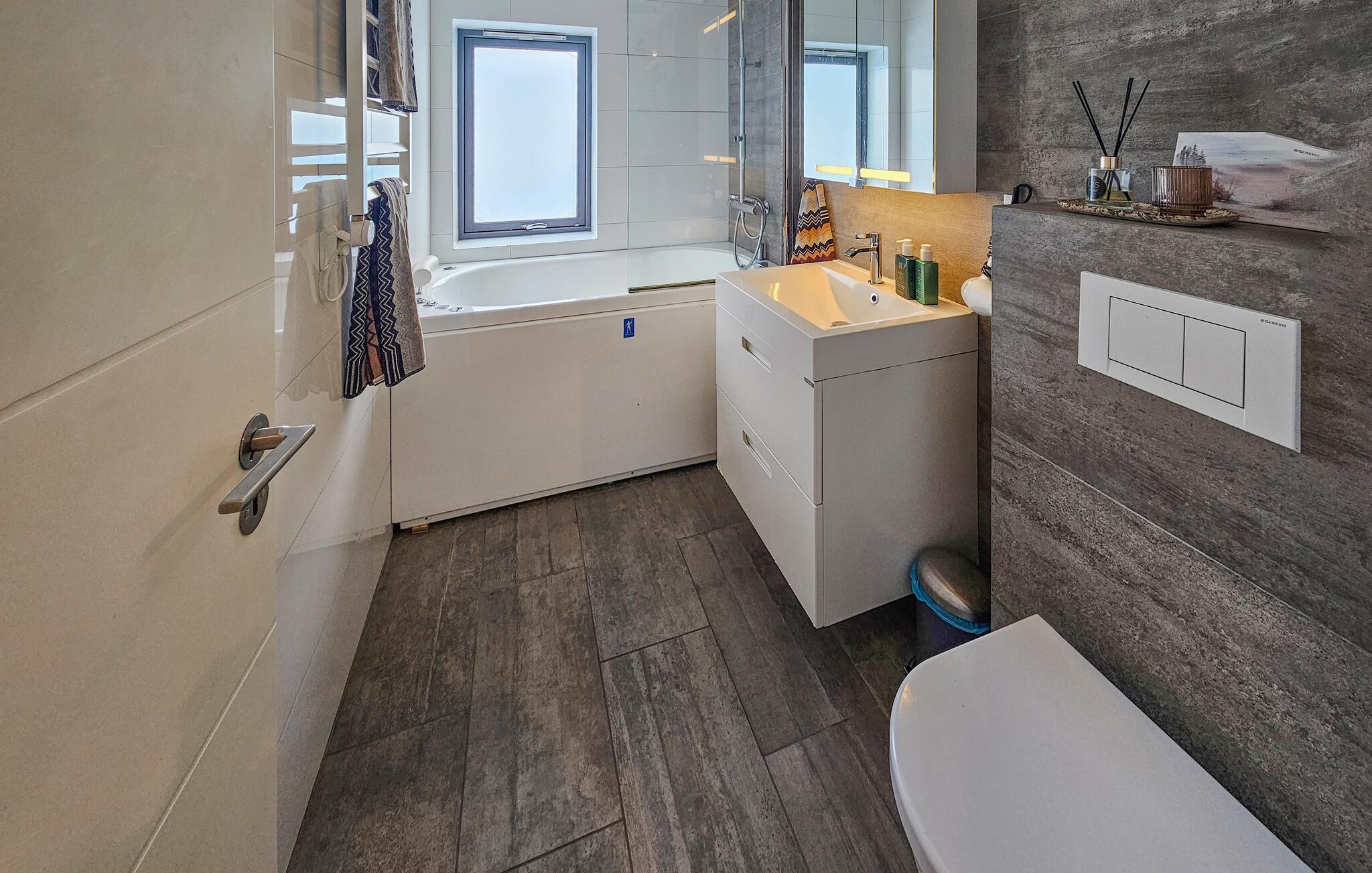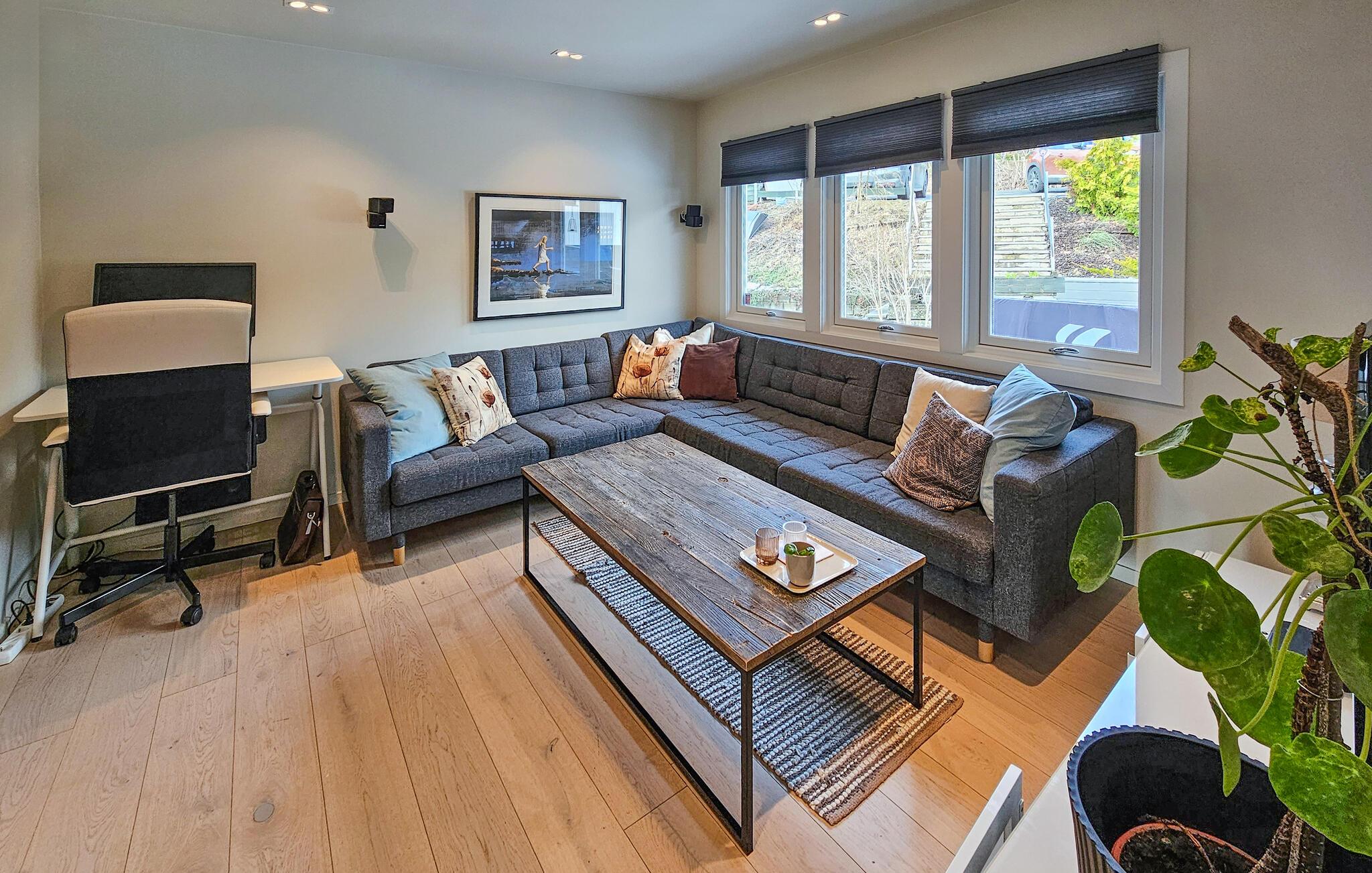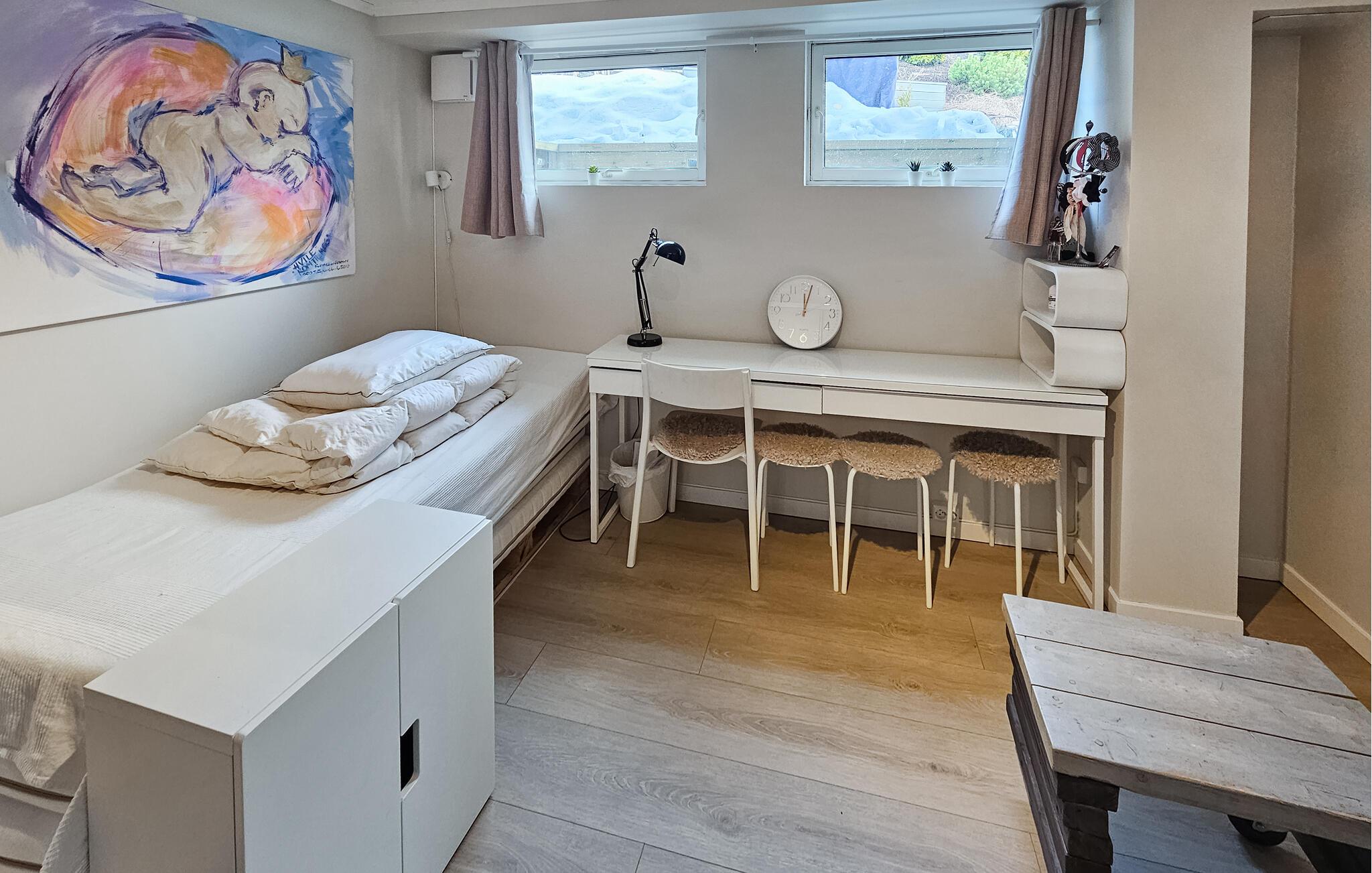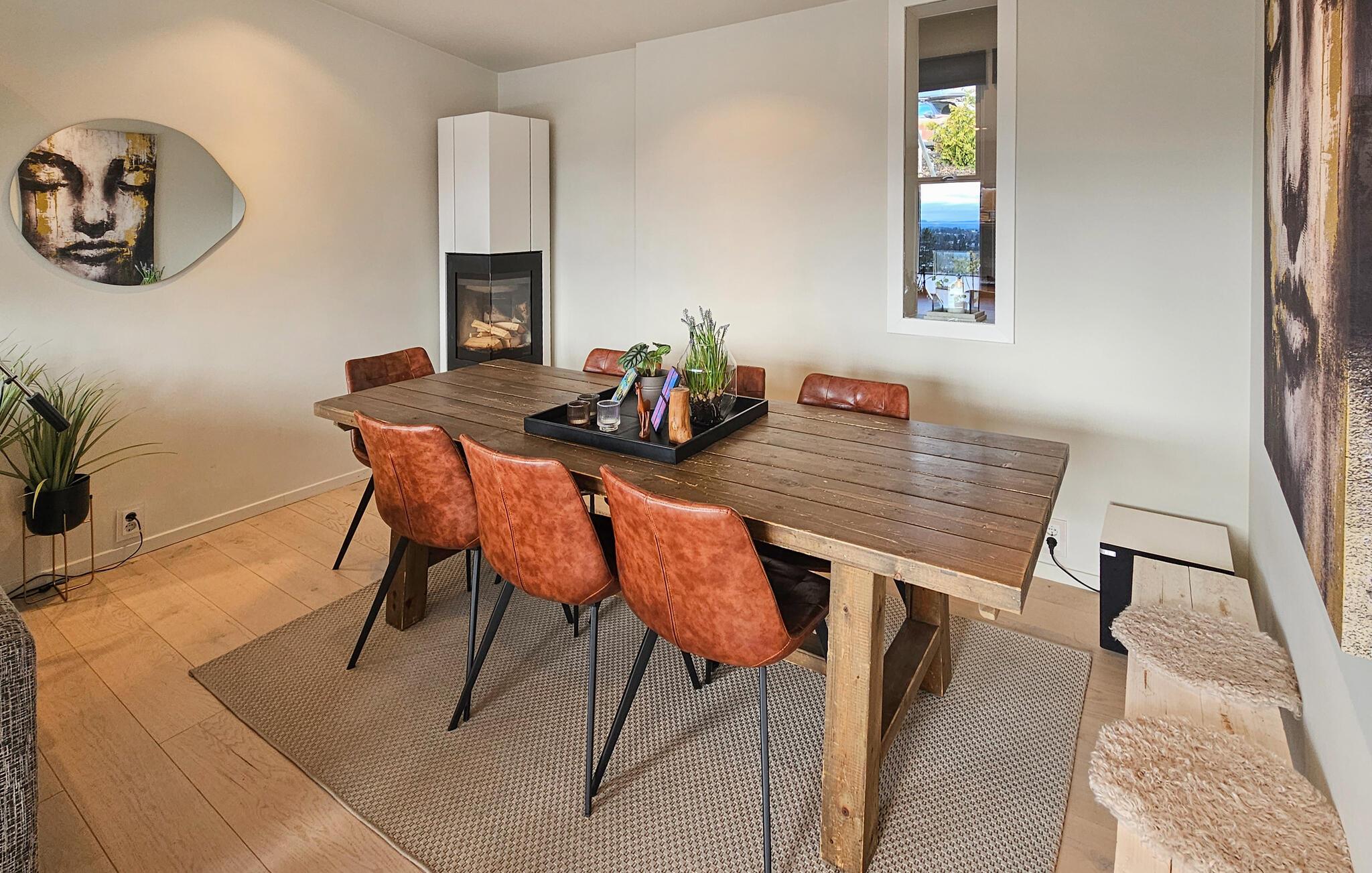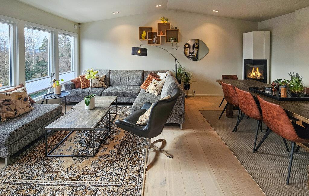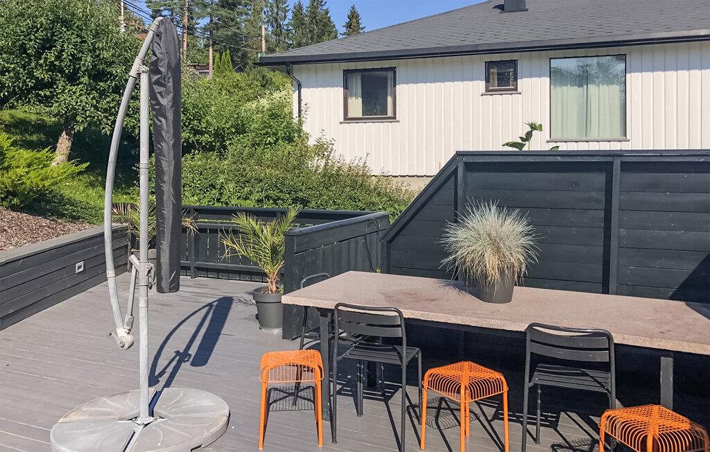 Wenn Sie die vielen Vorzüge und Attraktionen von Norwegens Hauptstadt Oslo genießen, aber gerne etwas außerhalb wohnen möchten, ist dieses schöne Ferienhaus in Sandvika eine gute Wahl. Lassen Sie den Tag mit einer wohltuenden Tasse Kaffee ruhig angehen und stellen danach Sie ein üppiges Frühstück für die Familie zusammen. In der modernen Küche des Ferienhauses kommen Hobbyköche voll auf ihre Kosten. Der großzügige Wohnbereich stellt mit seinen gemütlichen Sitzmöglichkeiten und dem Kamin den idealen Ort für gemeinsame Familienaktivitäten dar. Ob Gesellschaftsspiele am ausgedehnten Esstisch oder entspannte Stunden bei einem Film in einer der Sofaecken des Hauses, hier finden Sie Ruhe und Entspannung. Draußen erwartet Sie eine gemütliche Terrasse, die zu Mahlzeiten im Freien einlädt.