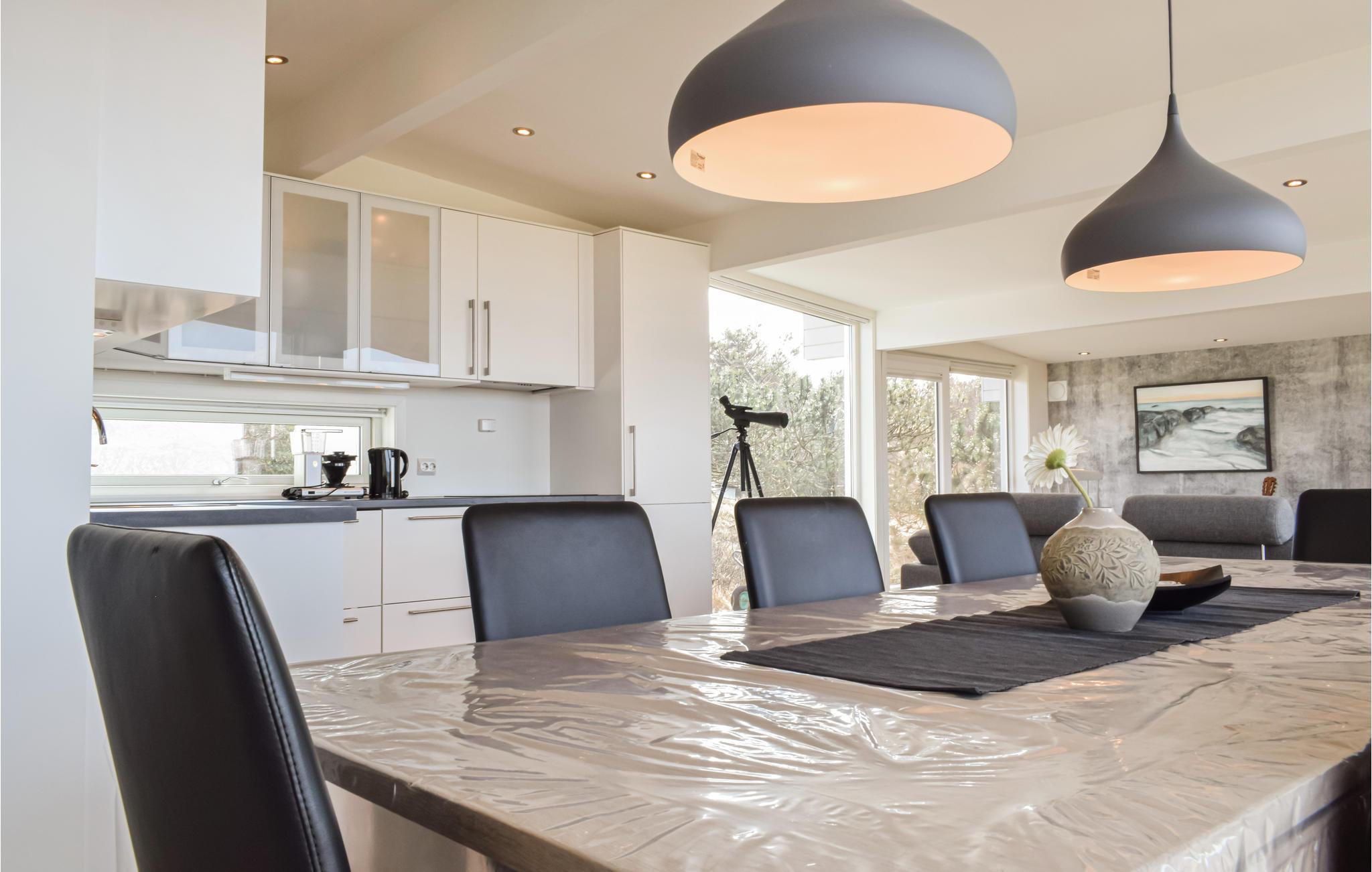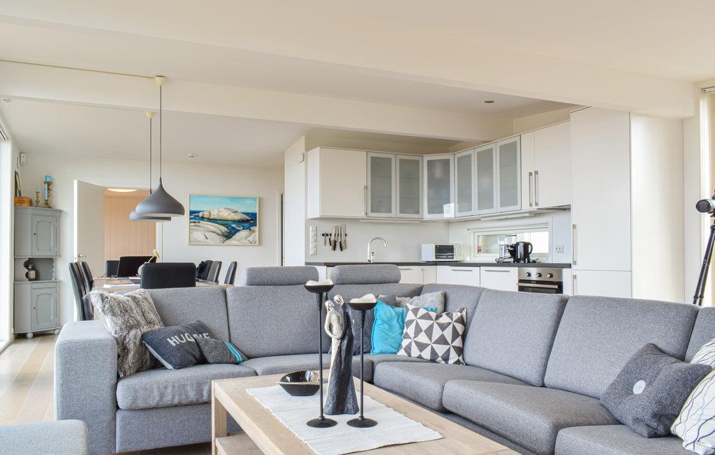 Mit seiner stilvollen und gemütlichen Einrichtung wirkt das Ferienhaus auf seine Gäste vom ersten Augenblick an einladend. Hier können Sie in bequemen Möbeln gemütlich zusammen sitzen, einen Film schauen oder Spiele spielen und gemeinsam Pläne für den nächsten Urlaubstag schmieden. Die großen Fenster ermöglichen einen tollen Blick ins Freie.